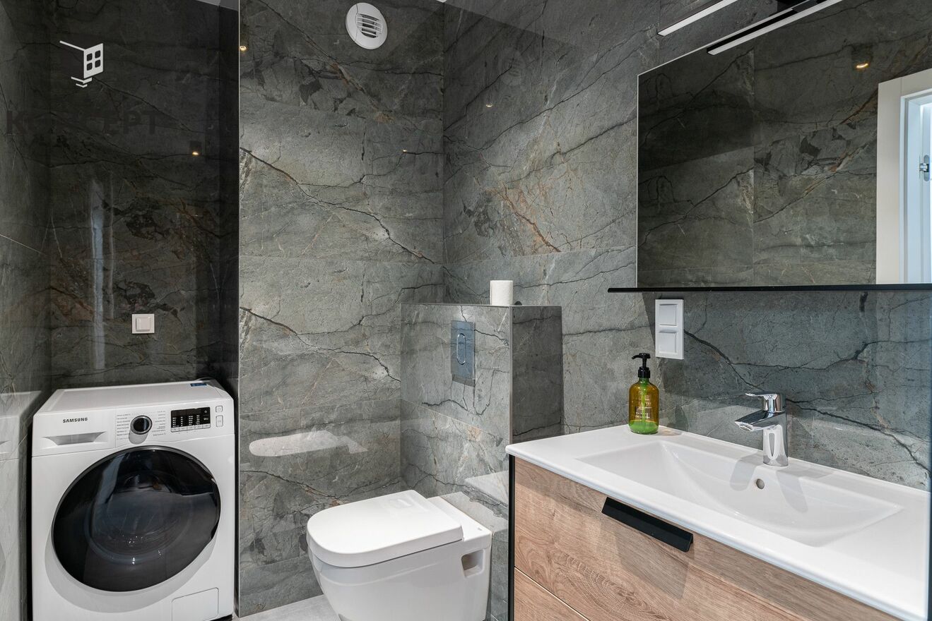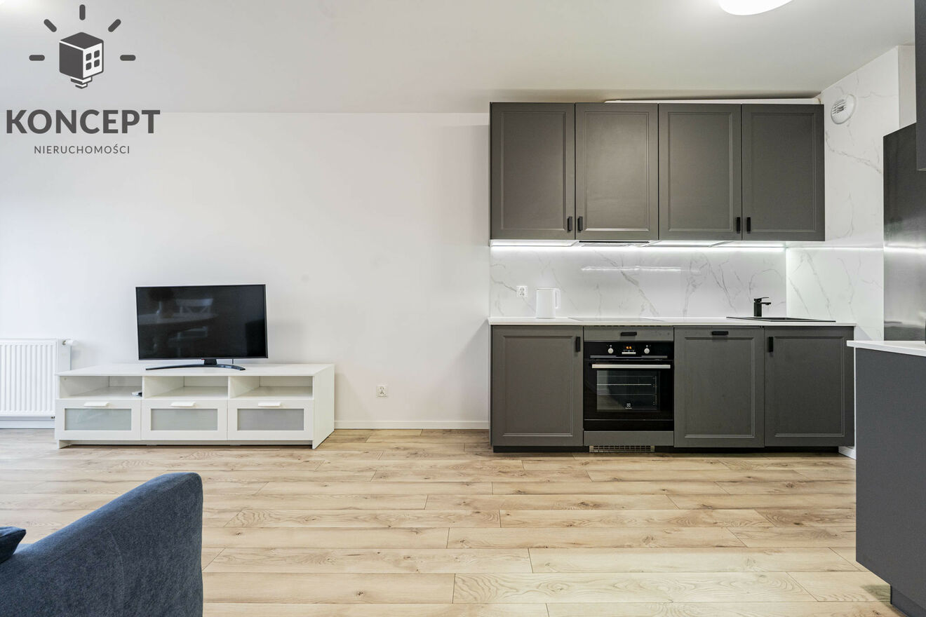Apartament umeblowany oraz wyposażony w wysokiej jakości sprzęt: pralka, zmywarka, okap, płyta indukcyjna, piekarnik, lodówko-zamrażarka, szafa, łóżko 2-osobowe, TV. W mieszkaniu została zamontowana klimatyzacja.