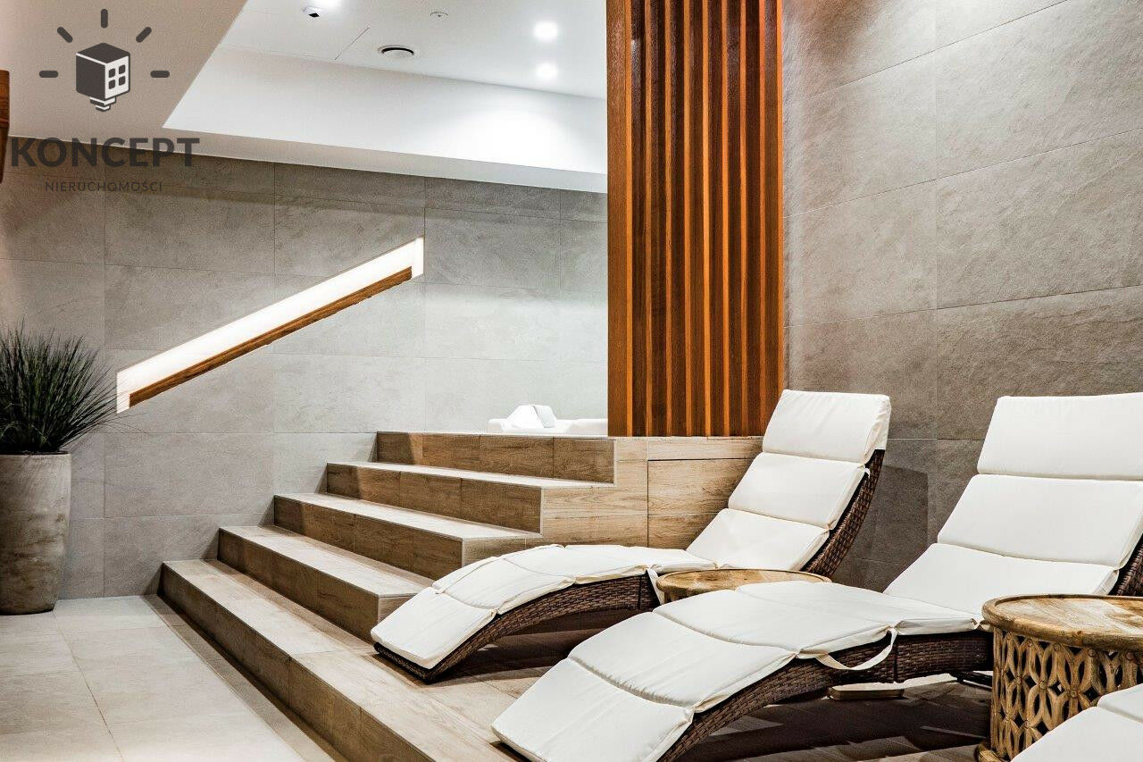 Wnętrza zostały zaprojektowane elegancko i funkcjonalnie z myślą o tym, aby życie codzienne było wygodne. Mieszkanie wyposażone w sprzęt najwyższej jakości. Dodatkowym atutem dla mieszkańców jest dostęp do prywatnej siłowni, sauny i jacuzzi.