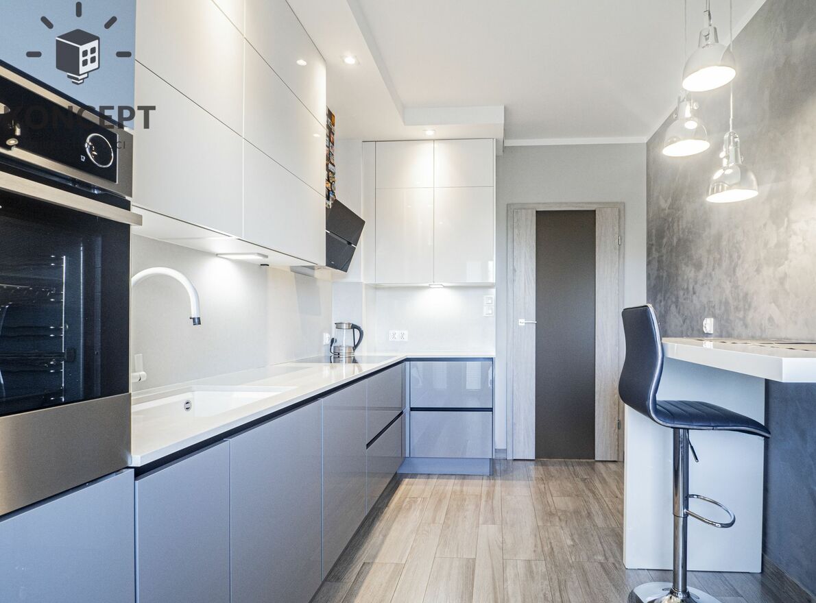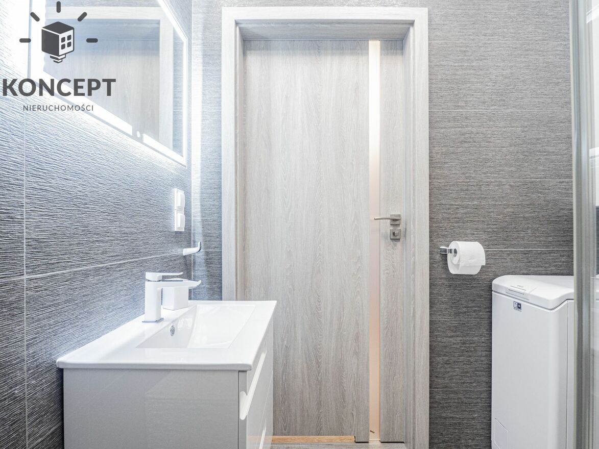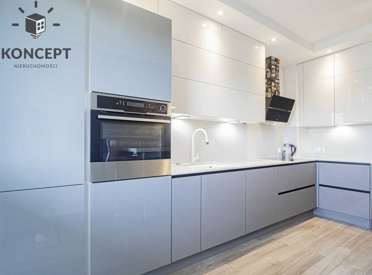 Apartament w pełni umeblowany oraz wyposażony w sprzęt wysokiej jakości: zmywarka, płyta indukcyjna, piekarnik, lodówka, pralka, klimatyzacja.