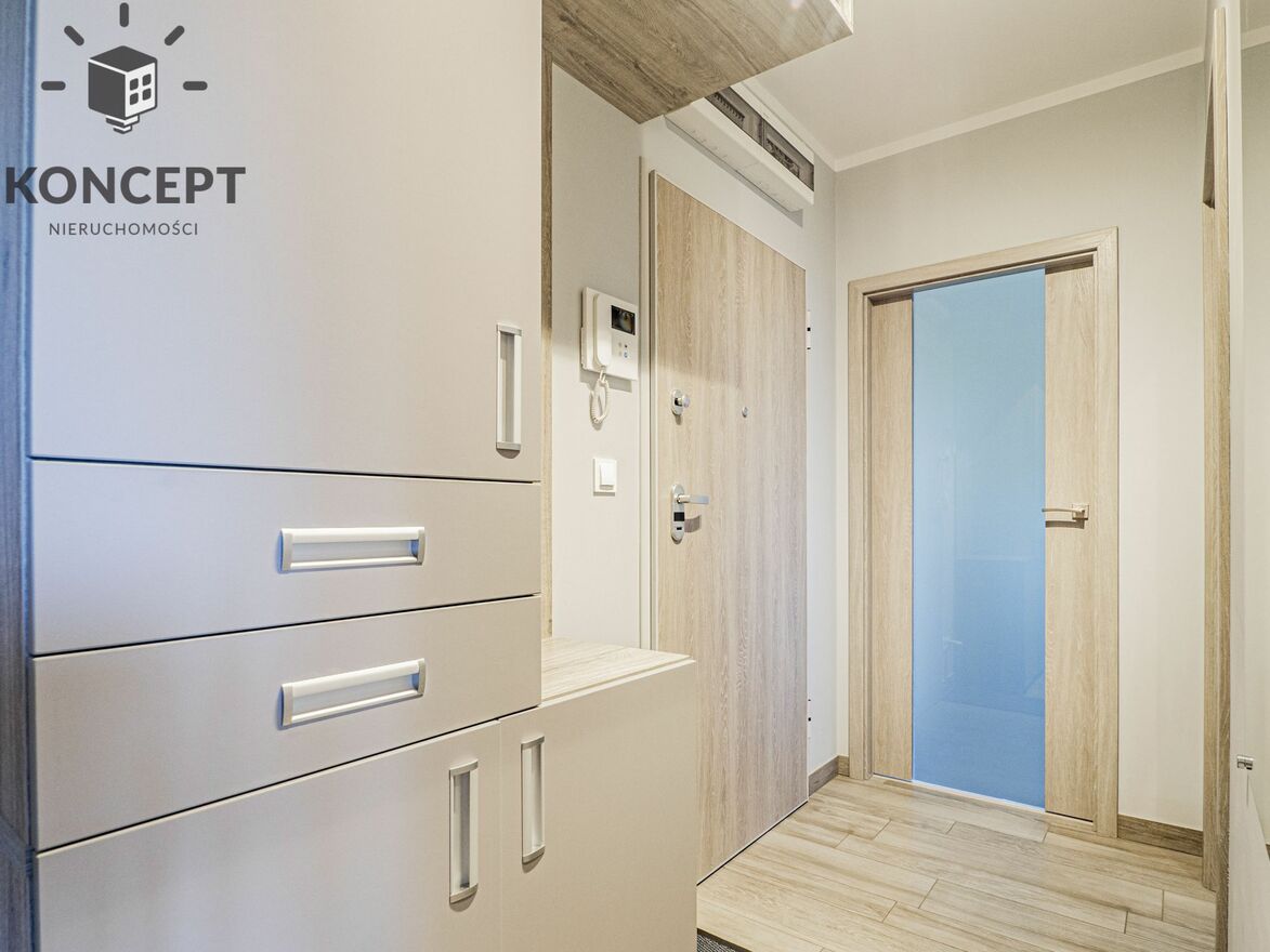 For rent air-conditioned 2-bedroom apartment with furnished terrace. The apartment is very comfortable and convenient, located on the first floor of a modern building with an elevator, in a monitored housing estate on Buraczana Street. The neighborhood is safe and very quiet. Right next to Krzycki Park and Kleciński Park, restaurants, stores and public transportation stops.
