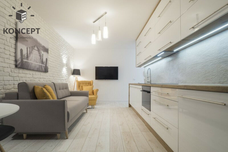 Mieszkanie umeblowane oraz wyposażone: zmywarka, lodówka, pralka, prysznic, kuchenka elektryczna, piekarnik, telewizor, rozkładany wypoczynek.