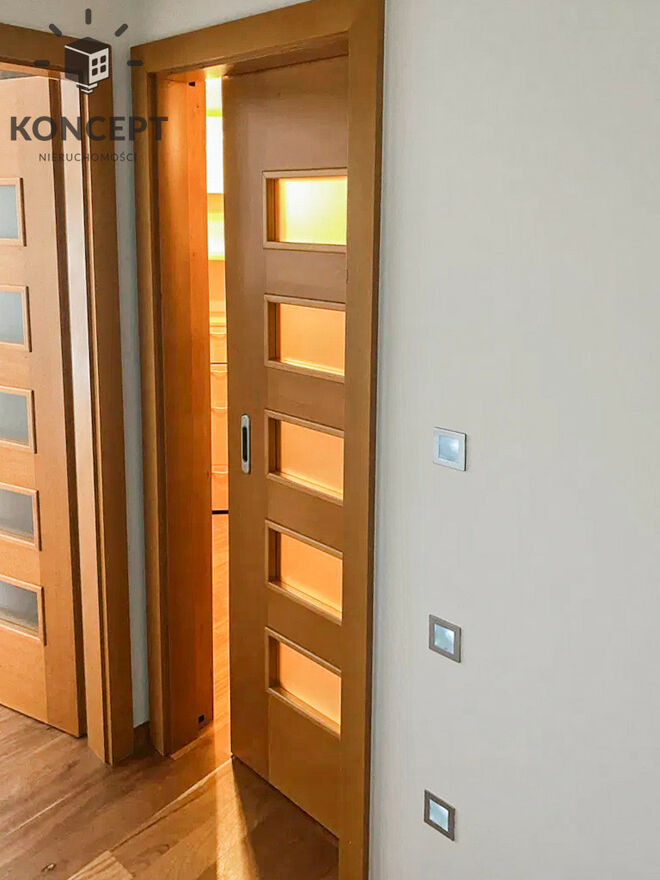 Mieszkanie jest w pełni umeblowane oraz wyposażone (jak na zdjęciach). Posiada drewnianą podłogę oraz rolety zewnętrzne i wewnętrzne.