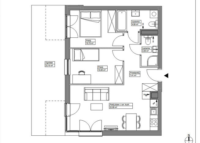 Mieszkanie atrialne, dwukondygnacyjne o powierzchni łącznej 82,59m2 + ogród 17,01m2 +taras 22,05m2 + strefa wejściowa o ...