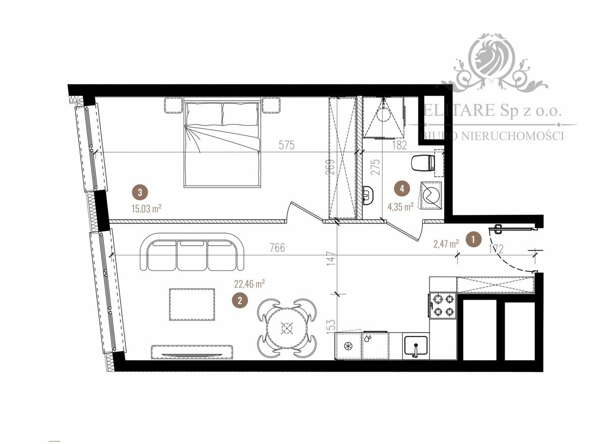 Apartament jest w stanie deweloperskim do własnej aranżacji, przykładowa aranżacja identycznego układu powierzchni – zdjęcia z mieszkania pokazowego.