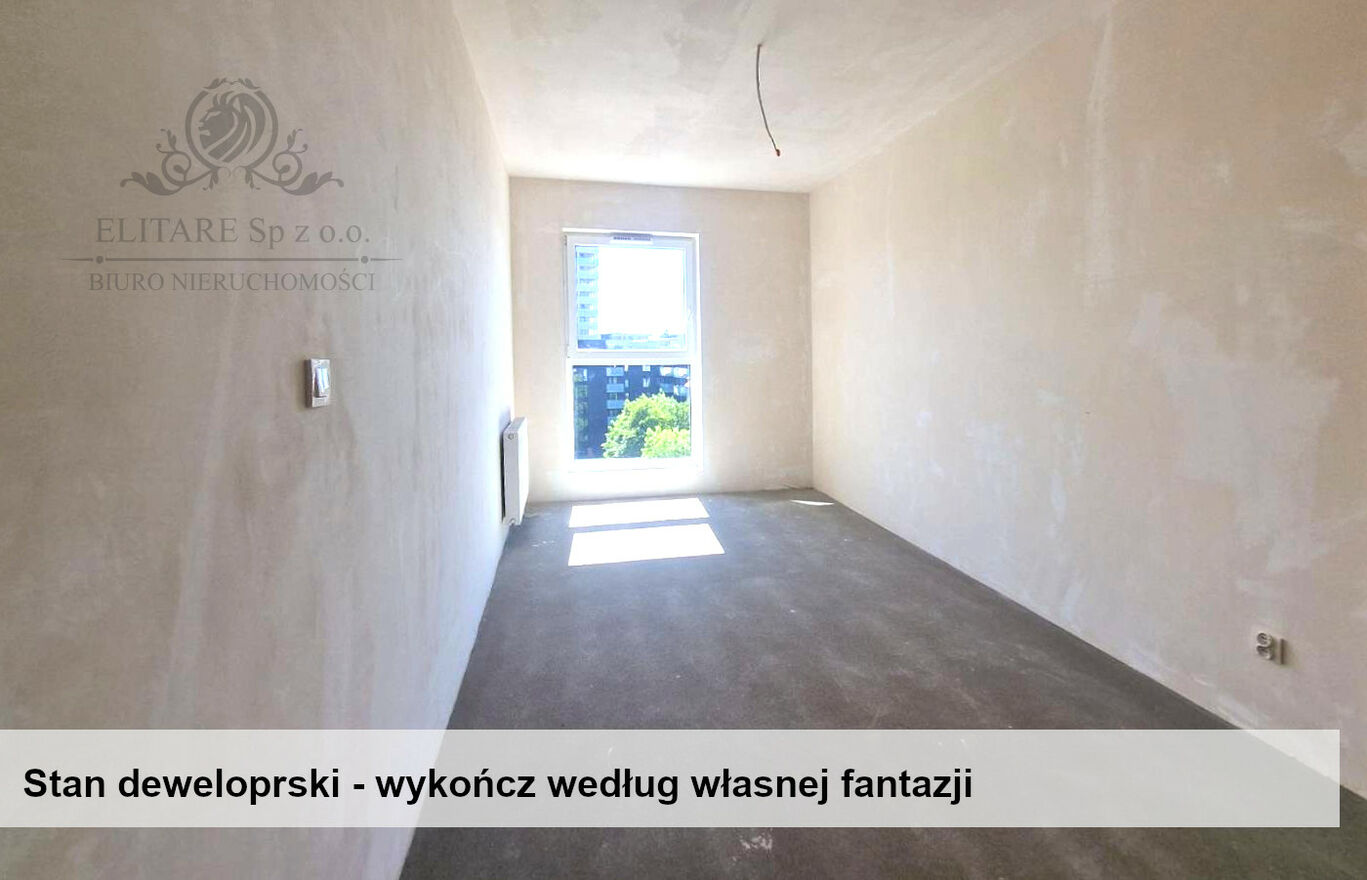 Apartament jest w stanie deweloperskim do własnej aranżacji, a jeżeli wolą Państwo gotowe do wprowadzania lub wynajęcia powierzchnię- to w tej inwestycji mam w ofercie gotowe, wykończone „pod klucz” i wyposażone apartamenty o podobnej powierzchni np. na 5 piętrze (zdjęcia wykończonego znajdują się w ofercie).