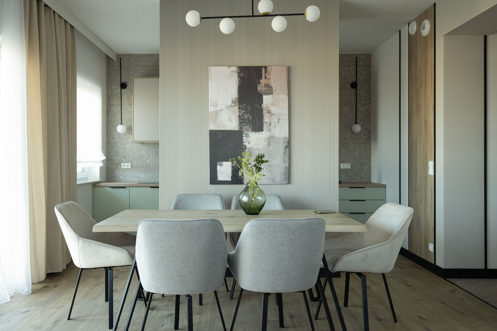 Duże przeszklenia, wysokiej jakości zabudowy meblowe i starannie