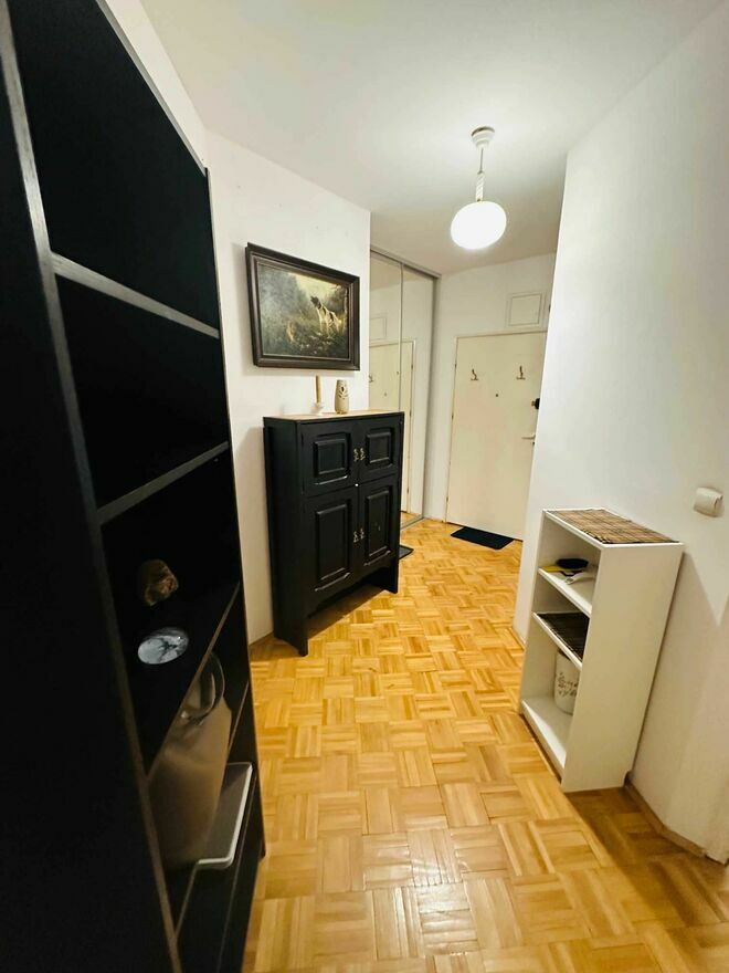 - przedpokoju zabudowanego duża szafą z lustrami, z którego jest wejście do wszystkich innych pomieszczeń w mieszkaniu.