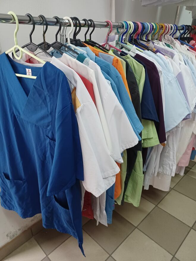 Używane bluzy medyczne w bardzo dobrym stanie, różne rozmiary i kolory.Także tuniki damskie i męskie białe z krótkim rękawem.