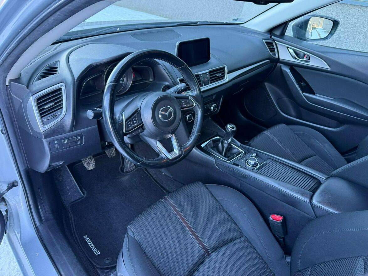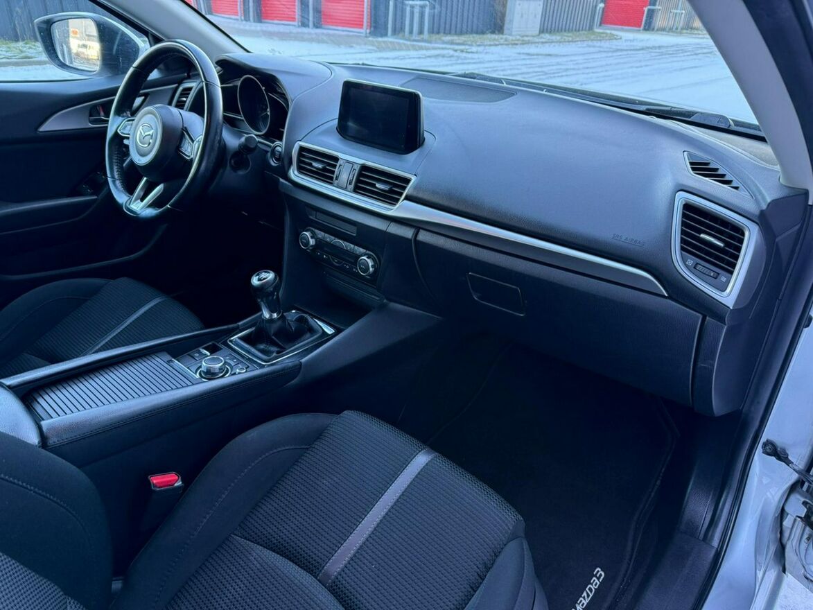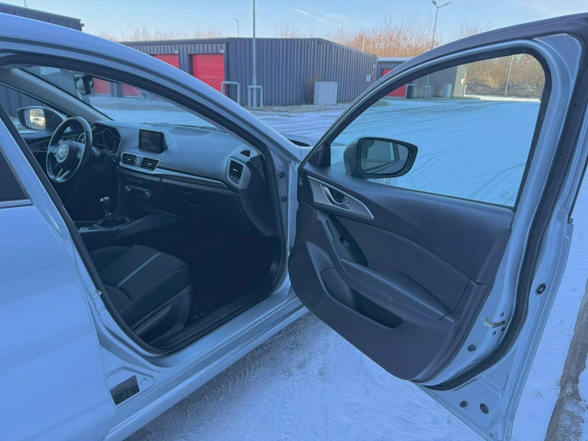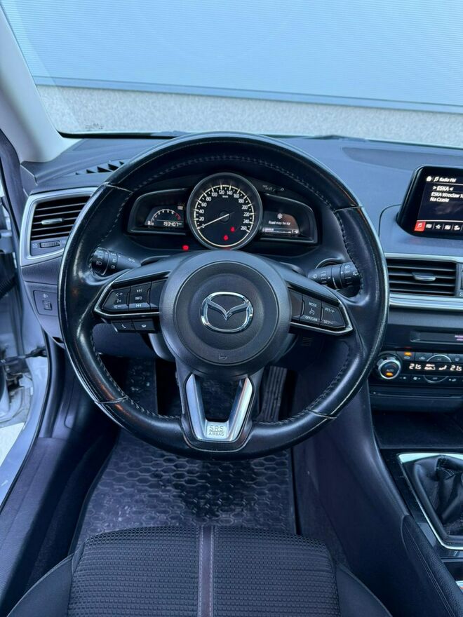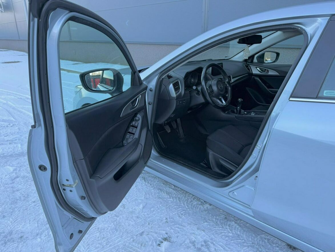 Sprzedam Mazdę 3 III generacji w nadwoziu 5-drzwiowym. Samochód jest w bardzo dobrym stanie wizualnym i technicznym. Silnik 2.0 SkyActiv o mocy 120KM chodzi aksamitnie i cicho. Ma pełną moc, jest w bardzo dobrej kondycji. Skrzynia biegów manualna 6-stopniowa. Zawieszenie nie budzi zastrzeżeń, nic nie puka, auto prowadzi się jak po sznurku. Na chwilę obecną Mazda nie wymaga żadnego wkładu finansowego. Wnętrze utrzymane w bardzo dobrym stanie, jest czyste i pachnące. Powłoka lakiernicza jest oryginalna na niemal całej karoserii, powtórnie malowany był jedynie lewy błotnik. Lakier jest w bardzo dobrej kondycji, w pięknym, stalowym kolorze. Auto stoi na oryginalnych felgach aluminiowych 15" z oponami zimowymi w bardzo dobrym stanie.Wyposażenie samochodu obejmuje: