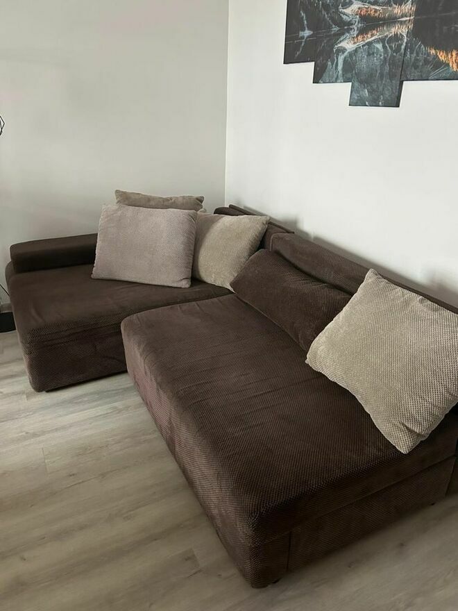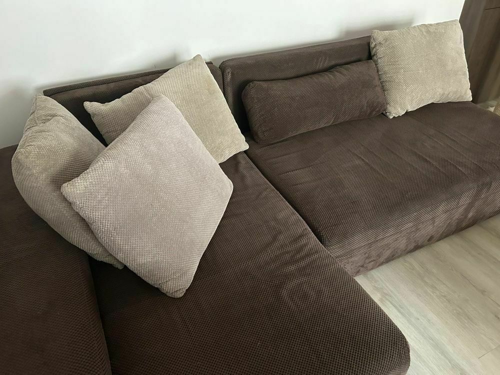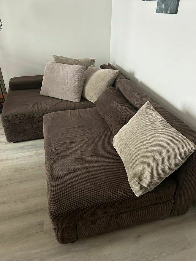 Wygodna, używana kanapa narożna w kolorze brązowym. Posiada miękkie poduszki i wygodne oparcie, zapewniając komfortowe miejsce do wypoczynku. Meble są w dobrym stanie, gotowe do użytku w Twoim domu. Tylko odbiór osobisty.Sprawdź zainteresowanie tym ogłoszeniem