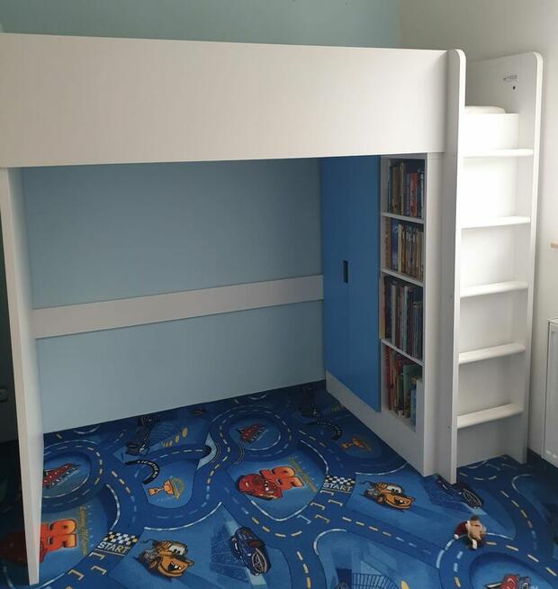 Mało używane łóżko piętrowe z niewielkimi śladami użytkowania. W zestawie: pojemna szafa na ubrania, regał na ...