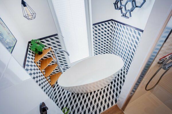 - elegancka i jasna łazienka z wolnostojącą wanną i prysznicem,