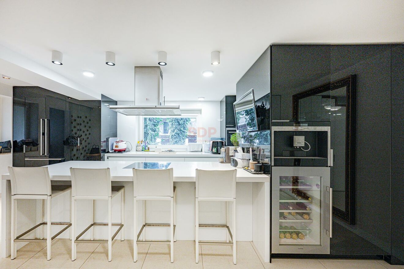 - Kuchnia wyposażona w AGD marki Siemens: lodówka 3 komorowa z zamrażarką oraz kostkarką, zmywarka,piekarnik z wbudowaną mikrofalówką,express do kawy, lodówka na wino. Dodatkowo młynek na odpady.