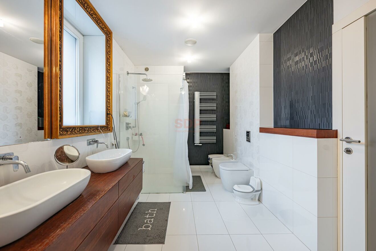 - Kitchen equipped with Siemens appliances: a three-compartment refrigerator with freezer and ice maker, dishwasher, oven with a built-in microwave, coffee machine, and wine cooler. Additionally, a waste grinder is installed.