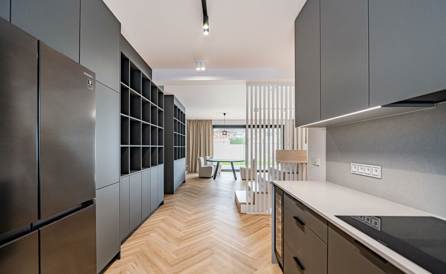 -the property is made of the highest quality materials and equipped with all the necessary appliances from best brands: Samsung refrigerator with ice maker, Miele dishwasher, Simens induction hob, remote-controlled glass hood, Electrolux oven with microwave, wine cellar;