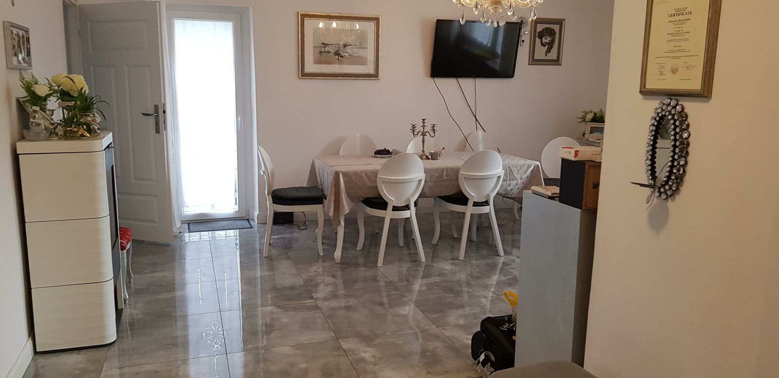 Na 1 piętrze 4 pokoje - salon z kominkiem, kuchnia, łazienka z kabiną, bidetem, wc. oraz wc osobno. na posadzkach kafle.