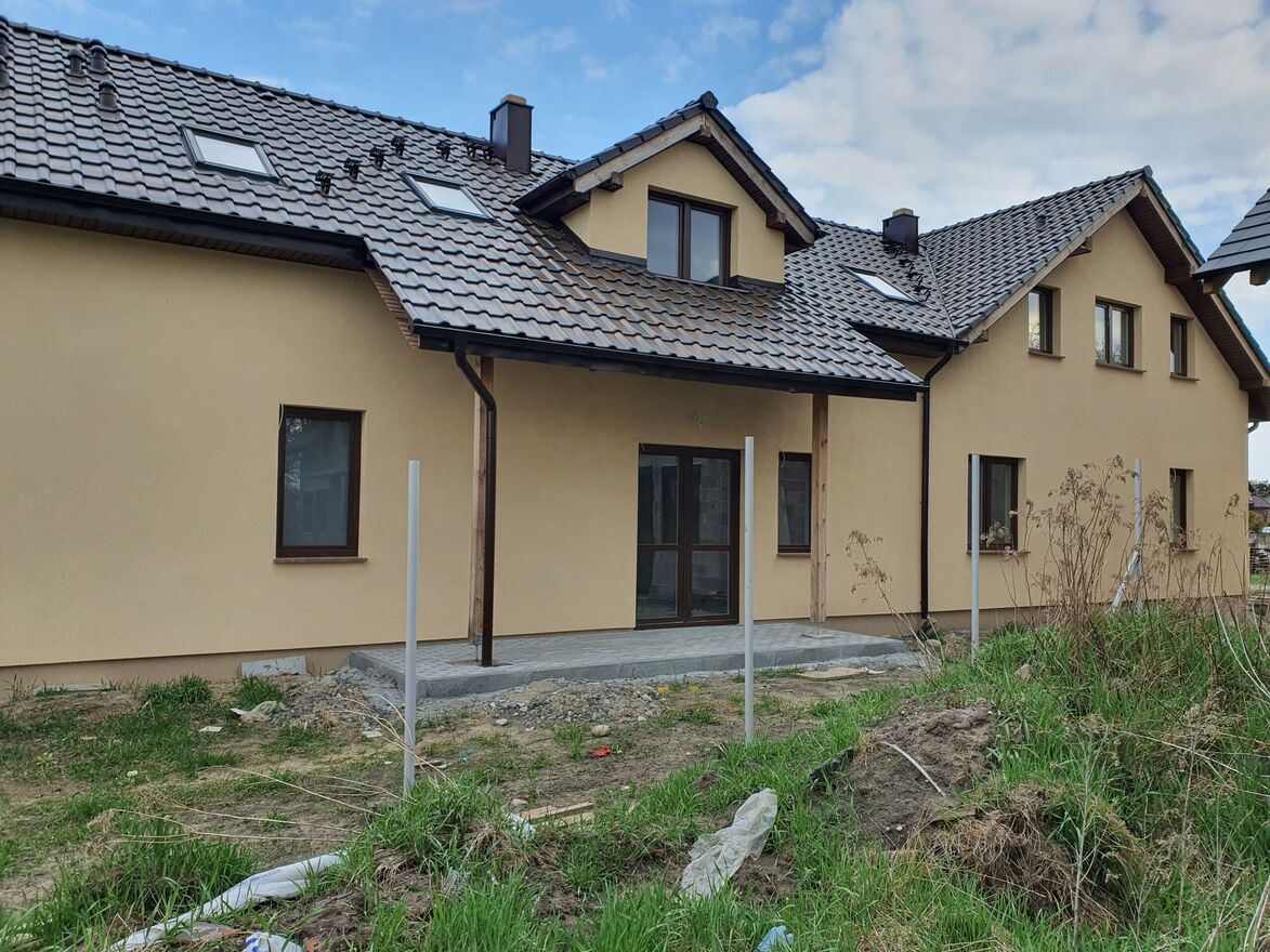 W północnych stronach Wrocławia - kierunek Warszawa. Przy granicach miasta z bardzo dobrym dojazdem zarówno komunikacją czy PKP. w pobliżu trasy na Warszawę oraz łącznika obwodnicy. Dom jednorodzinny w zabudowie szeregowej o pow użytkowej 117 m2 powierzchnia całkowita 133 m2 na działce 500 m2Wybudowany z karamzytu ocieplony 25 cm styropianem kryty dachówką ceramiczną ogrzewany piecem gazowym Dietrich, ogrzewanie podłogowe na parterze i kominek, wszystkie media miejskie dojazd drogą utwardzoną, sklepy, szkoła, poczta, kościół na miejscu