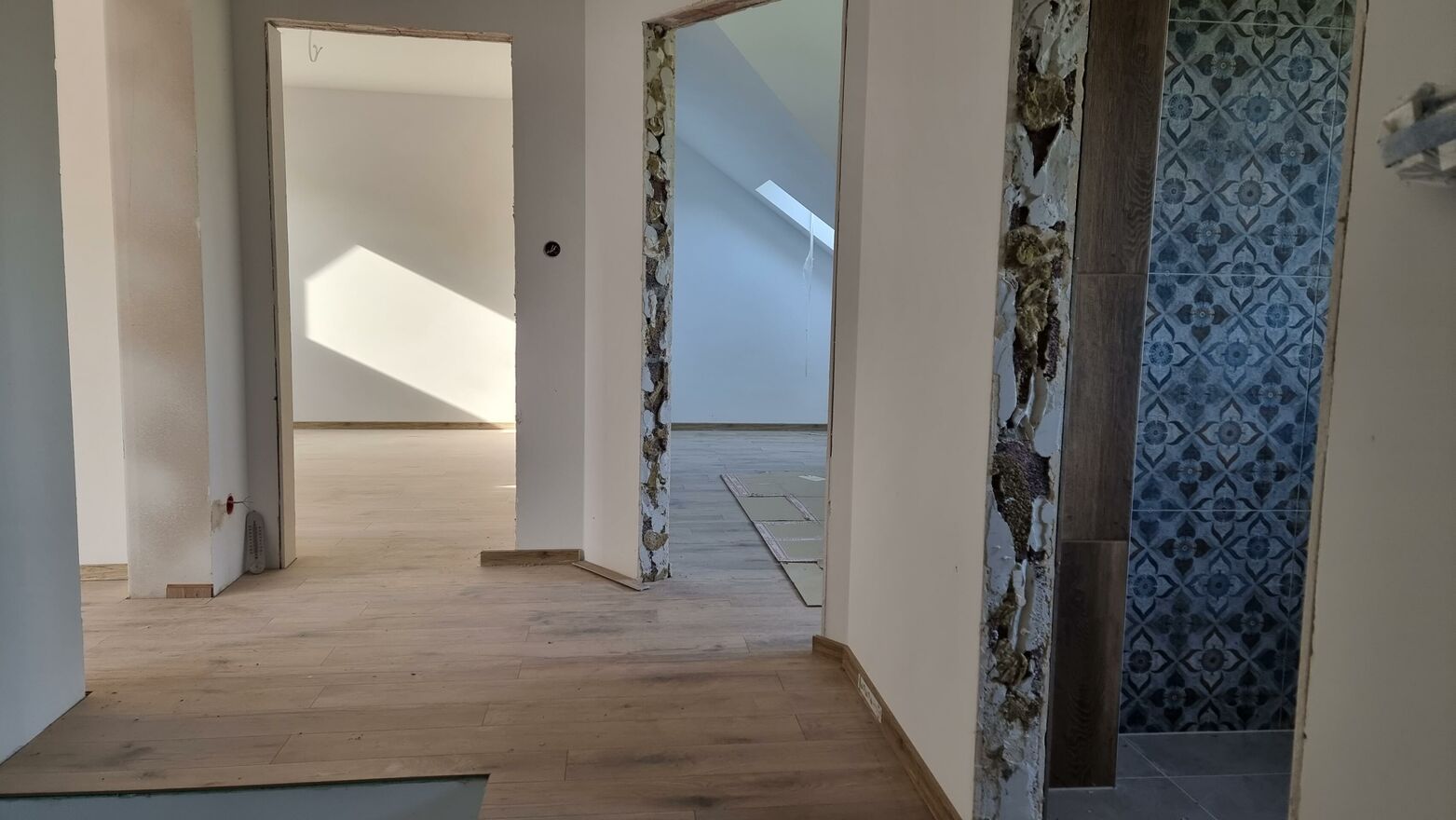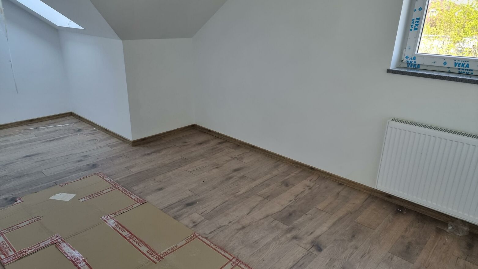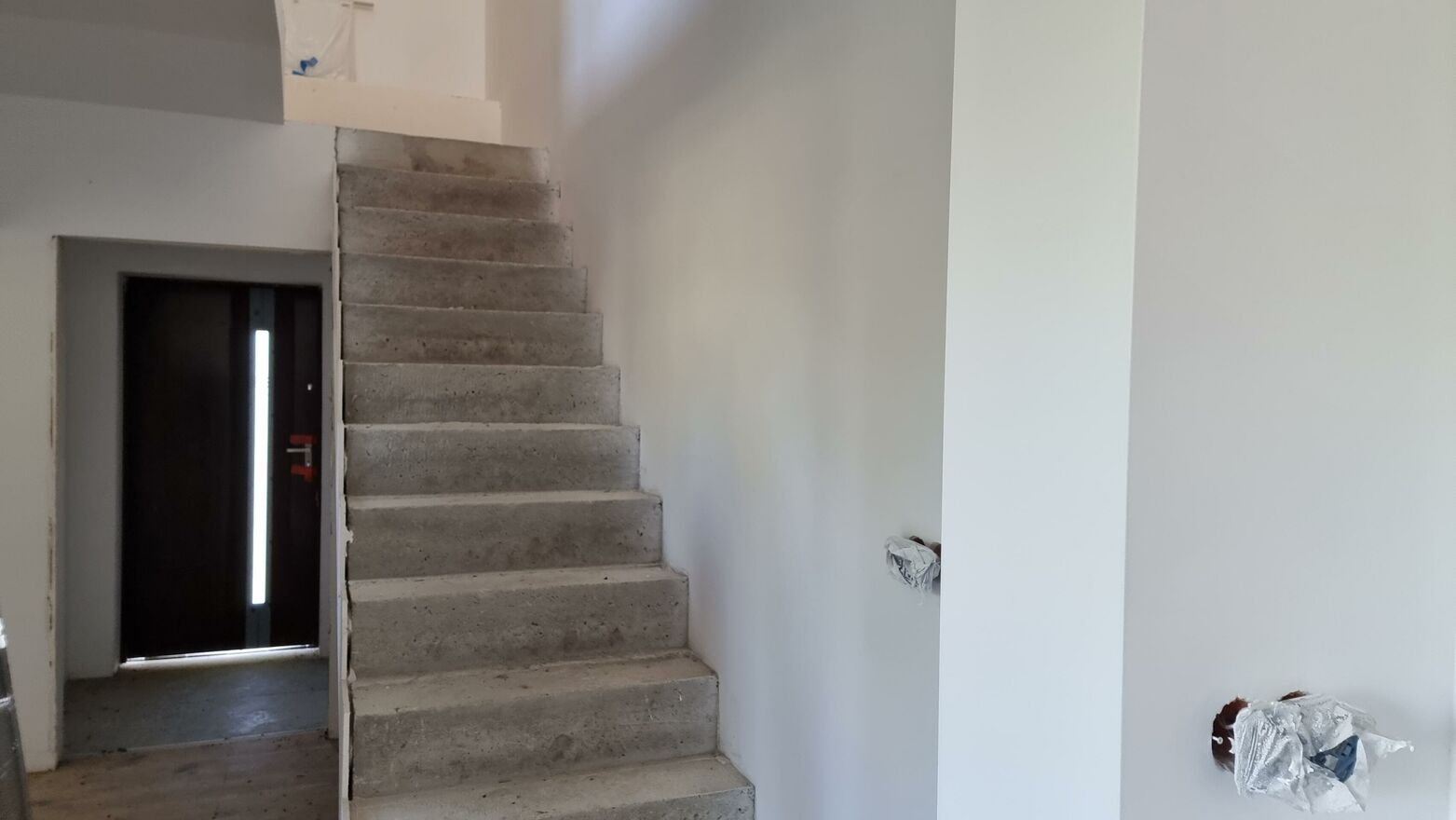 Budynek wykończony położone podłogi z paneli i kali, w łazienkach wanna i kabina, pozakładane parapety, zamontowane gniastka elektryczne, wylane schody do góry, ściany pomalowane na biało, gotowy do zamieszkania.