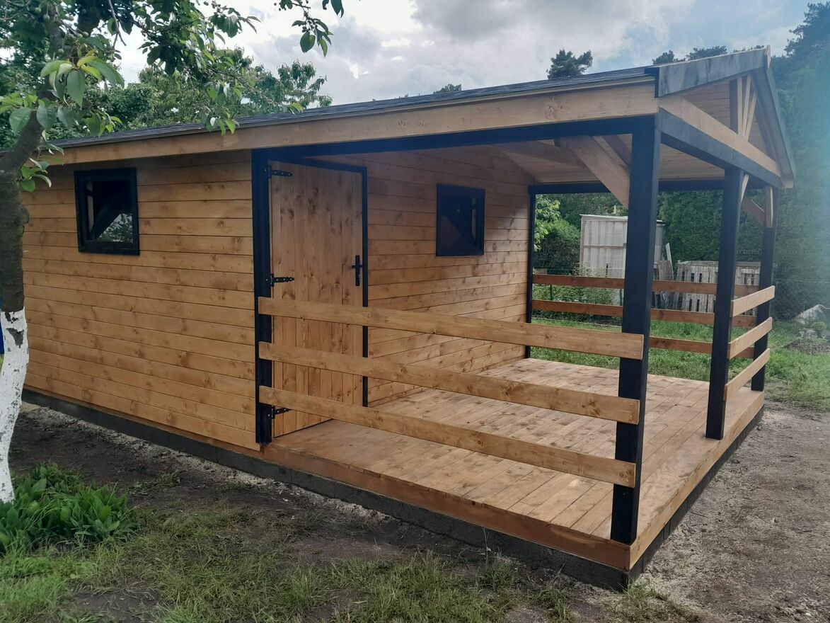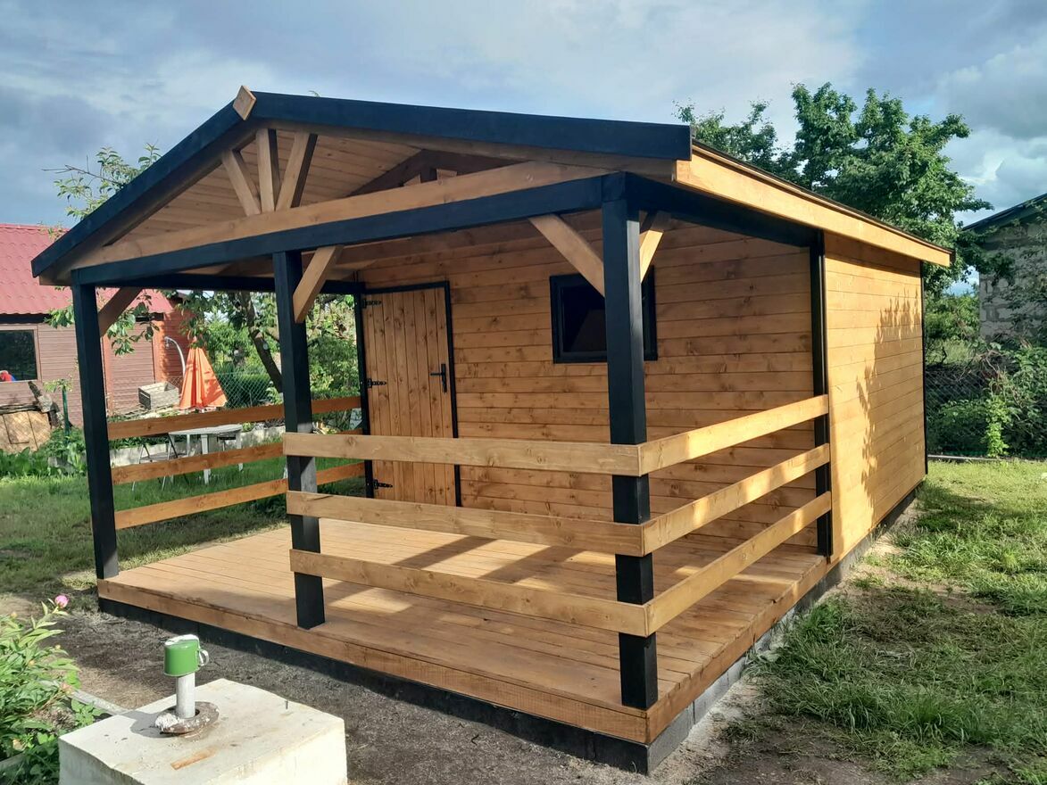 Domek 4x4 plus weranda 2.5 x4 dach kryty gontem ściany i dach deska pióro wpust malowanie i montaż w cenie okno uchylne więcej info pod telSprawdź zainteresowanie tym ogłoszeniem