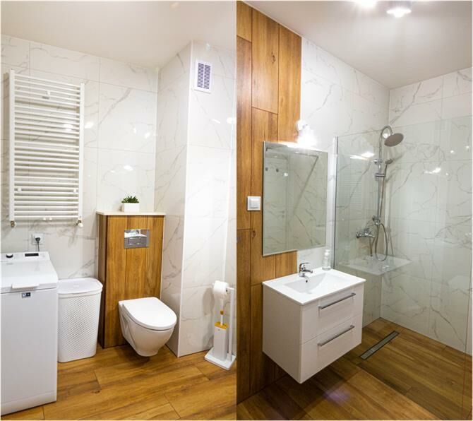 Łazienka: prysznic, WC, pralka