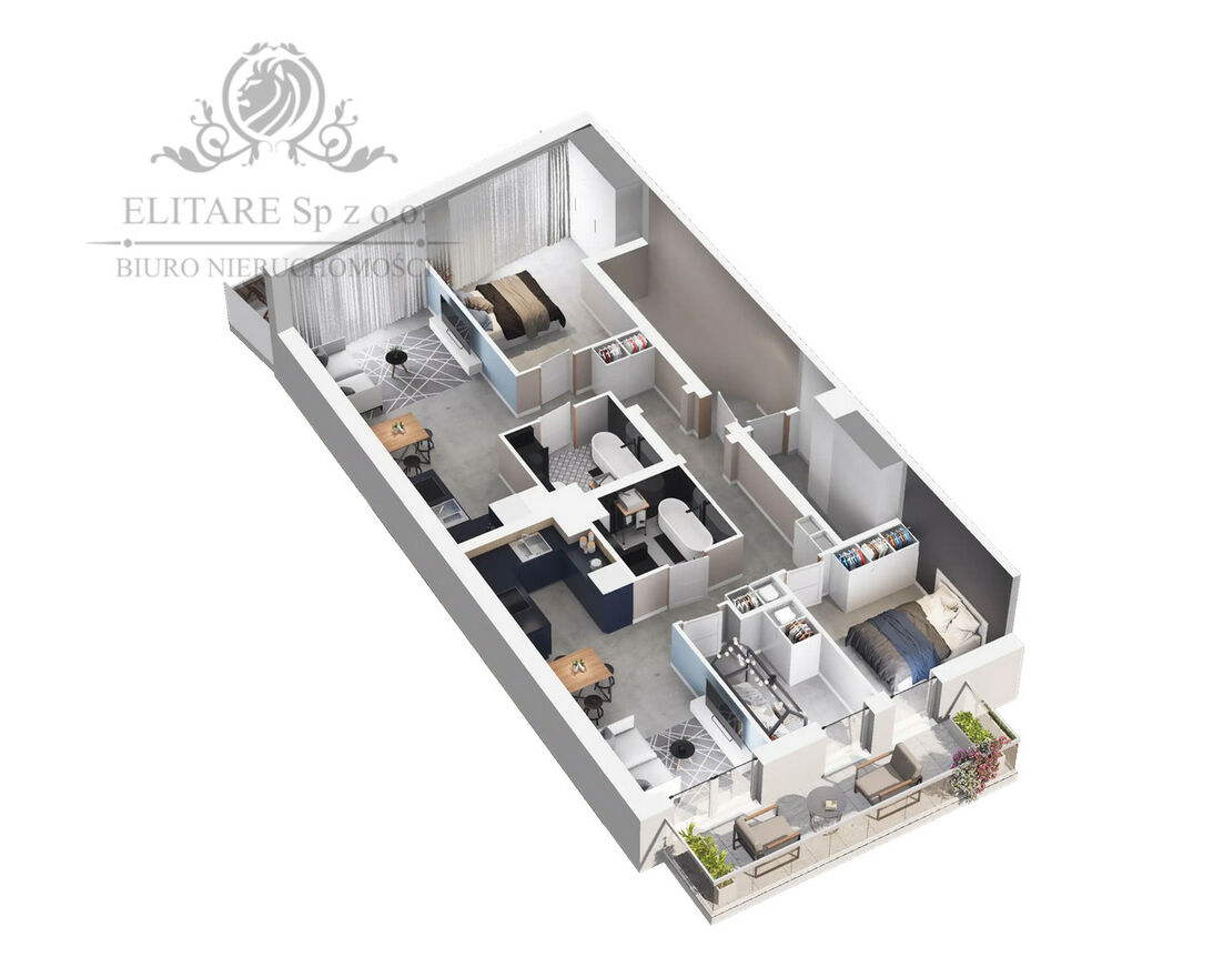 - powierzchnie mieszkalną można zaaranżować jako dwurodzinną - jeżeli potrzebne jest mieszkanie, które ma dwie niezależne przestrzenie życiowe – mieszkanie ma dwie niezależne kuchnie i dwie łazienki.