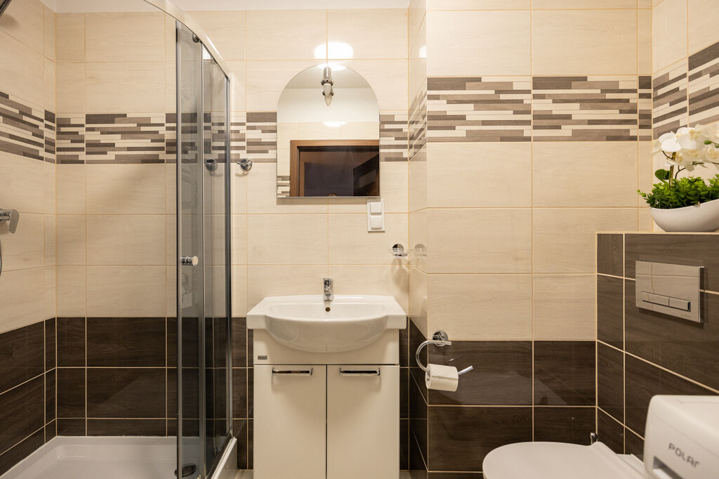 domowego. Łazienka z prysznicem, na wyposażeniu znajduje się