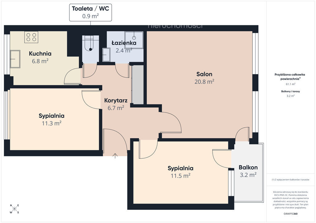 oddzielne WC balkon – idealny na poranną kawę piwnica (3,6 m²)