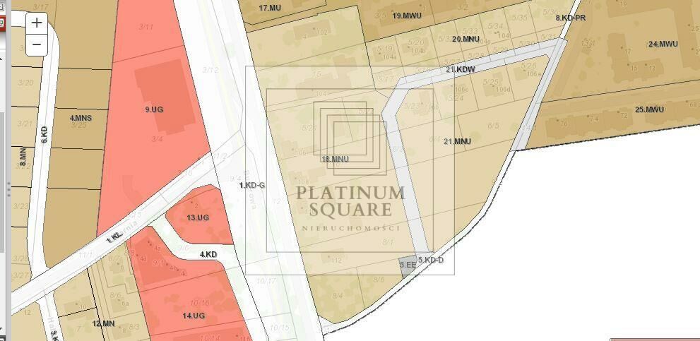 Przeznaczenie w miejscowym planie zagospodarowania przestrzennego - 18.MNU przeznaczenie podstawowe zabudowa mieszkaniowa jednorodzinna, przeznaczenie uzupełniające usługi (m.in. produkcja drobna, naprawa pojazdów, magazyny i handel hurtowy, infrastruktura drogowa).