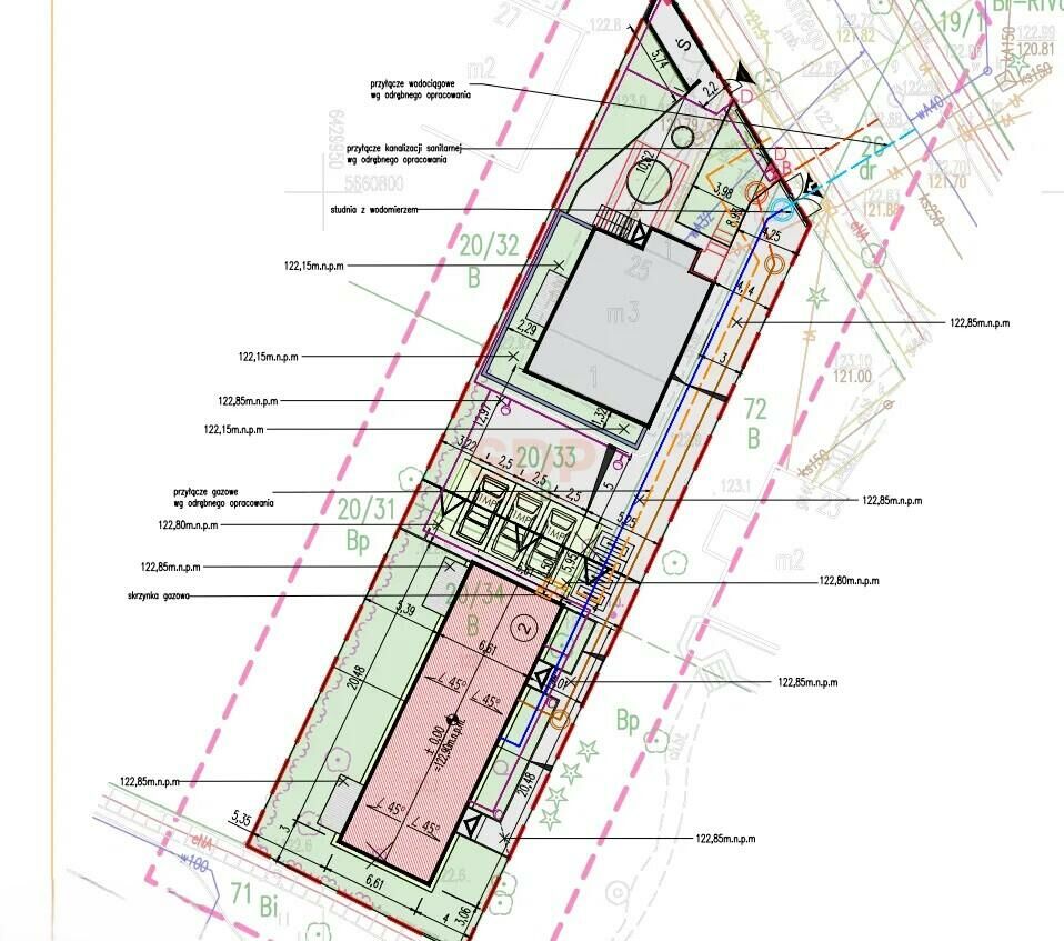 Dom wolnostojący modernizowany, z zachowaniem funkcji mieszkalnej (100m2). Nowy bliźniak (2 lokale po 90m2 każdy) każdy z osobnym wejściem, ogródkiem i MPDroga wewnętrzna. Wiata śmietnikowa + stojaki rowerowe. Instalacje: prąd, woda, kanalizacja, gaz, pompa ciepła.