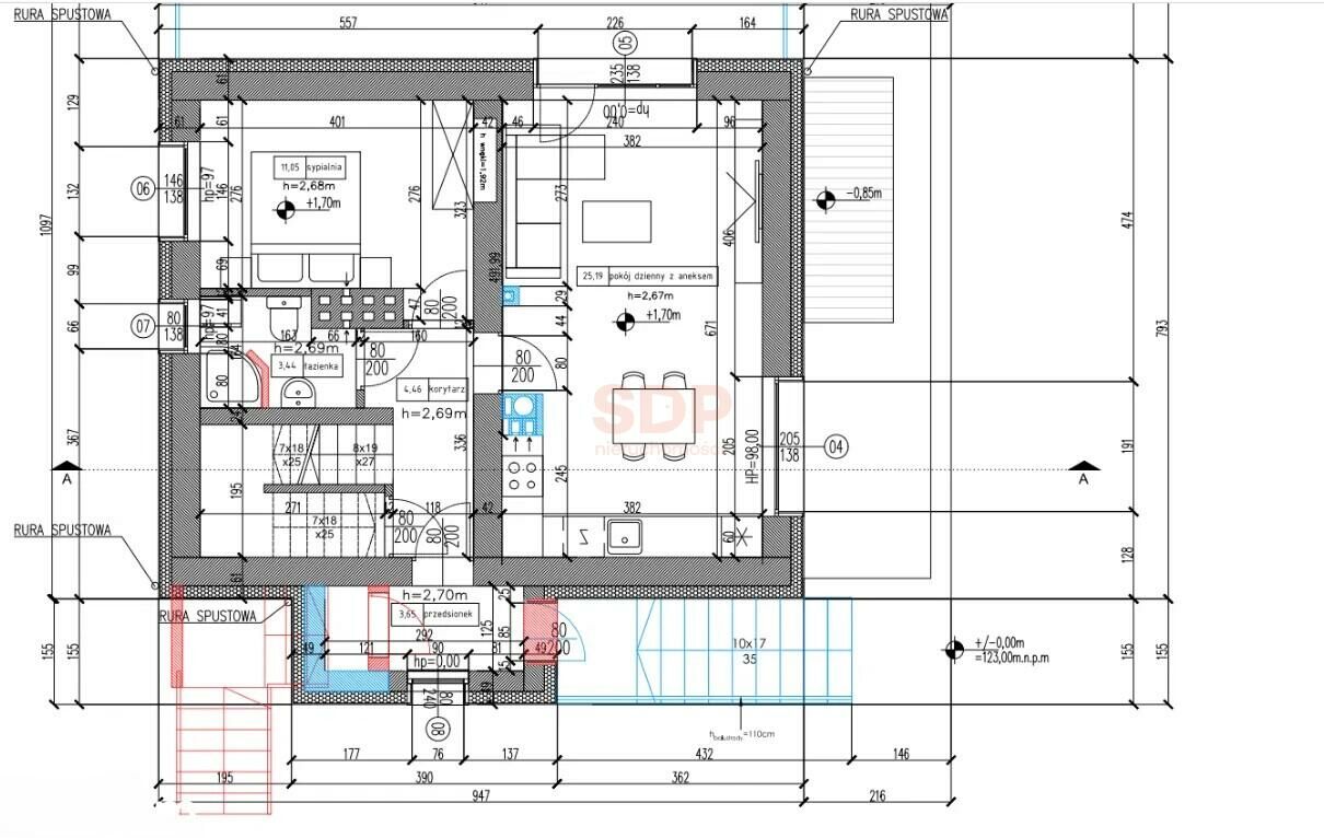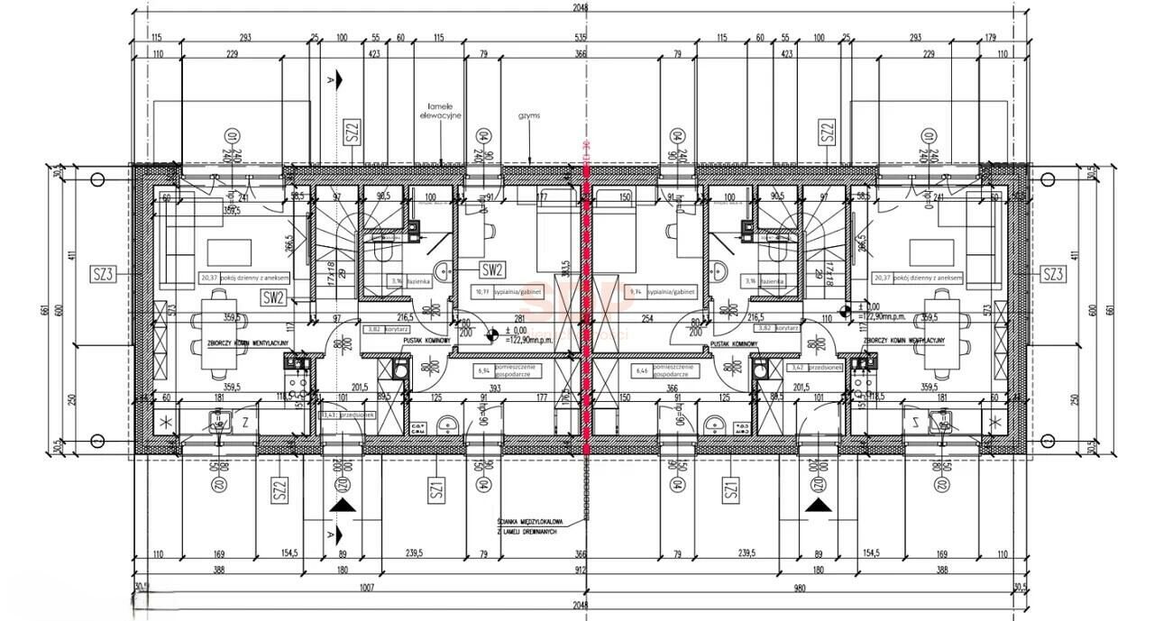 Projekt obejmuje zarówno modernizację istniejącego domu jednorodzinnego, jak i budowę nowego budynku dwulokalowego w zabudowie bliźniaczej. Wszystko zgodnie z zatwierdzonym projektem zagospodarowania terenu (PnB) i prawomocnym pozwoleniem na budowę. Całość to 280m2 PUMu.