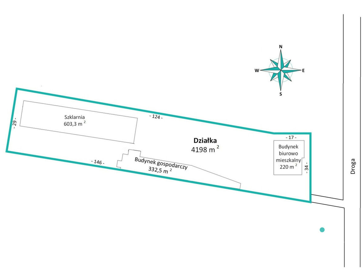 3. Budynek gospodarczy - szklarnia (ok. 603,30 m²) - obecnie użytkowana jako magazyn, możliwość adaptacji pod inną działalność gospodarczą.