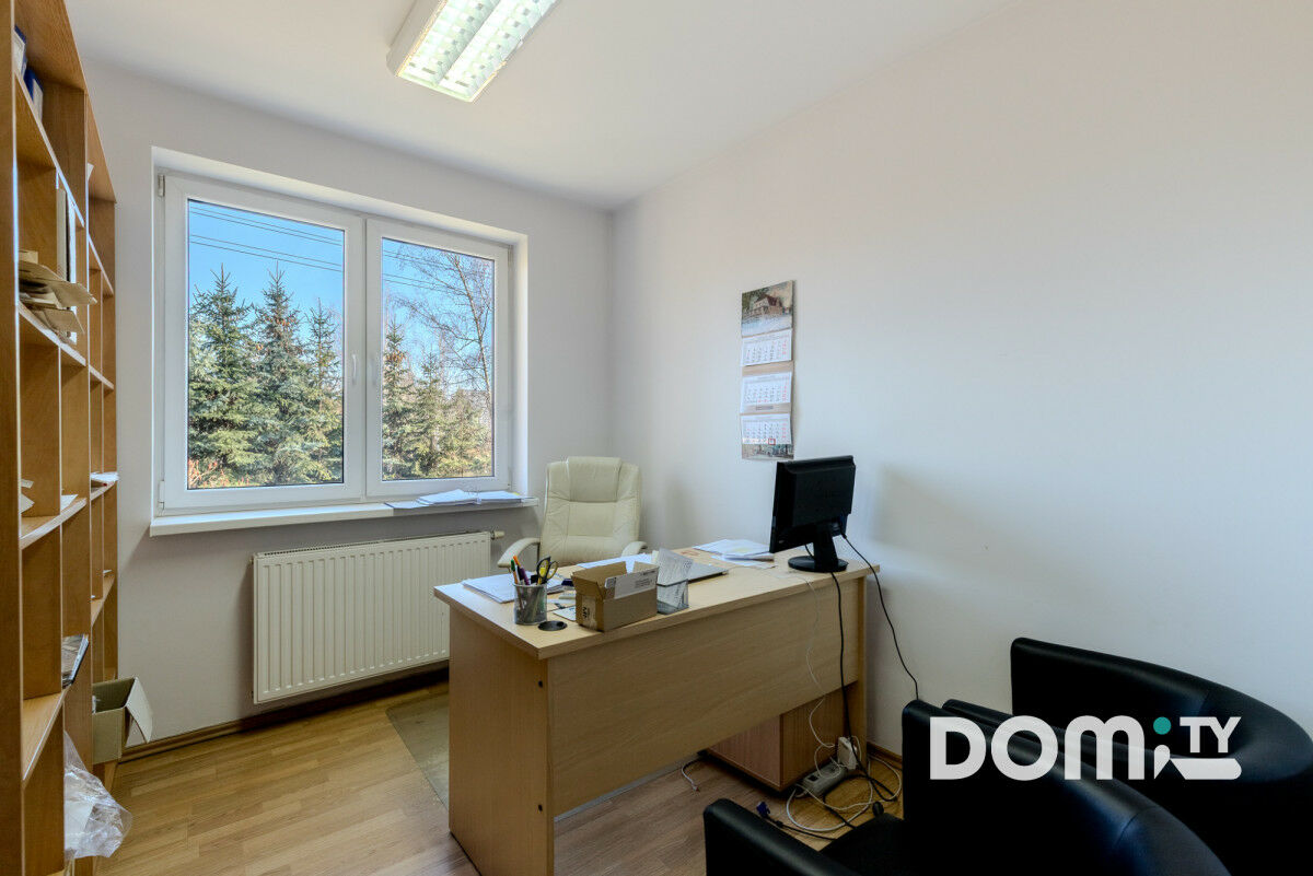 1. Budynek biurowo-mieszkalny (ok. 220 m²) - 3-kondygnacyjny budynek, aktualnie wykorzystywany jako biura, choć posiada status budynku mieszkalnego 2-lokalowego z dwoma księgami wieczystymi: