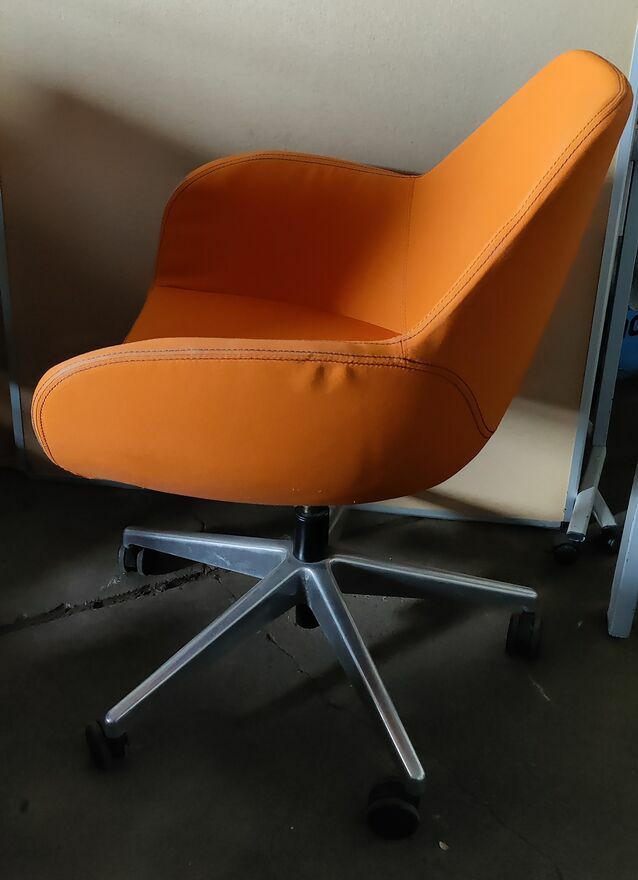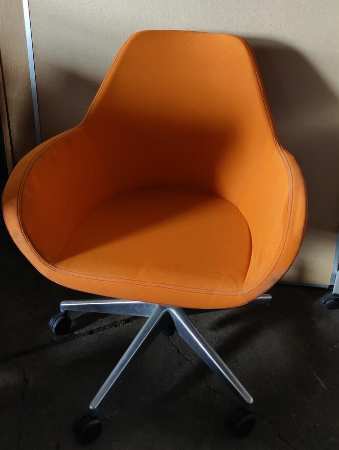 Dzień dobryPosiadamy w sprzedaży Fotele obrotowe Profim 10E wykonane na 5-ramiennej bazie z kółkami lub stopkami. Fotele posiadają mechanizm z regulacją wysokości siedziska. Obite materiałem w kolorze pomarańczowym. Bardzo wygodny. Idealny do nowoczesnego wnętrza. Stan dobry. Normalne ślady użytkowania.