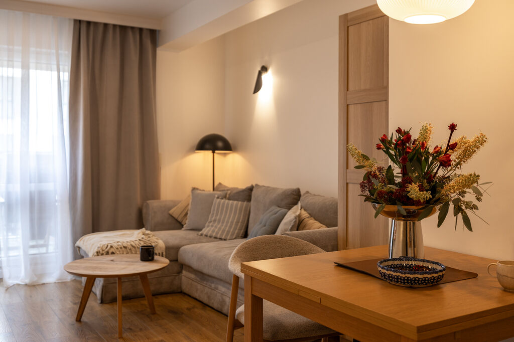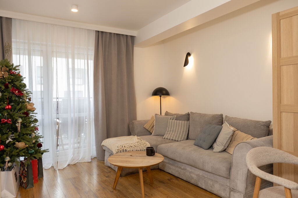 Mieszkanie jest spójne stylistycznie, bardzo dobrze doświetlone i
