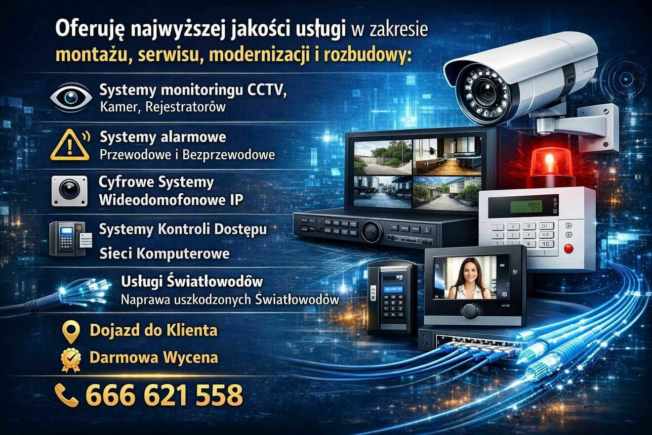 Kamery, alarmy, światłowody, sieci IT - montaż, serwis