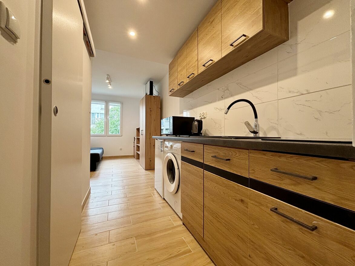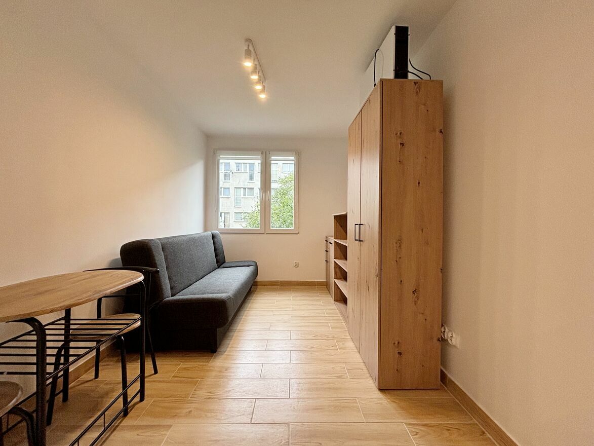 Ze względu na metraż preferowana jedna osoba. Mieszkanie w pełni wyposażone, świeżo po generalnym remoncie, wszystko nowe, sprzęty AGD na gwarancji. Na stanie rozkładane łóżko, szafa, komoda, regał, meble kuchenne, mikrofala z funkcją piekarnika, lodówko-zamrażarka, pralka, czajnik elektryczny, w łazience kabina prysznicowa. W oknach rolety, możliwość dostawienia biurka.