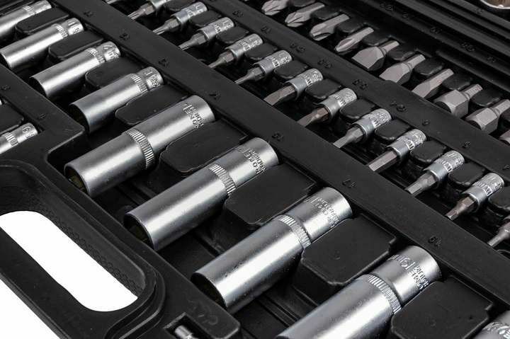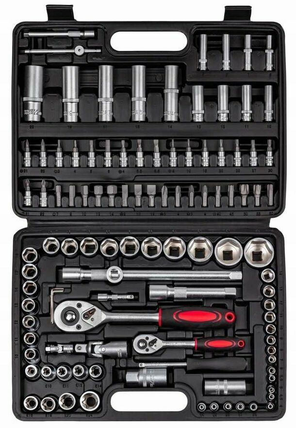 Sprzedam fabrycznie nowy zestaw 108 kluczy - najpopularniejszy zestaw kluczy w Polsce - nie bez powodu, najlepszy stosunek cena-jakość na rynku detalicznym! Klucze nasadowe znakomite są dla amatorów jak i profesjonalistów. Są one bardzo wytrzymałe, wykonane z materiału chromowo-vanadowego (CRV-50 - stal narzędziowa). Sprawdzą się w każdym domowym garażu, czy też profesjonalnym serwisie samochodowym i nie tylko. Zestaw jest zapakowany w praktyczną miękką walizkę. Pełen pakiet nasadek zapewni doskonałe dopasowanie klucze do danej potrzeby -w każdym miejscu pracy.