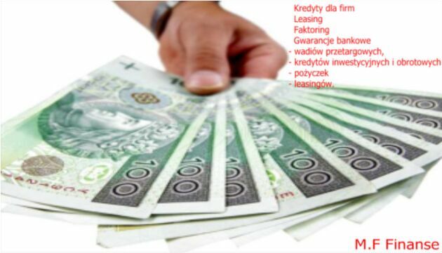 Szanowni Państwo od blisko 10 lat naszą misją jest wspieranie finansowe naszych klientów poprzez udostępnienie szerokiej oferty najlepszych dostępnych na rynku produktów finansowych dostosowanych do państwa indywidualnych potrzeb niezbędnych do prowadzenia biznesu na jasnych i korzystnych zasadach.Poszukujesz wsparcia finansowego dla swojego przedsiębiorstwa u nas możesz porównać i wybrać najlepszą ofertę finansową przystosowaną do potrzeb Twojej firmy Oferujemy elastyczne warunki współpracy szybkie decyzje oraz kompleksową obsługę całego procesu a to wszystko bez PRZEDPŁAT itp.