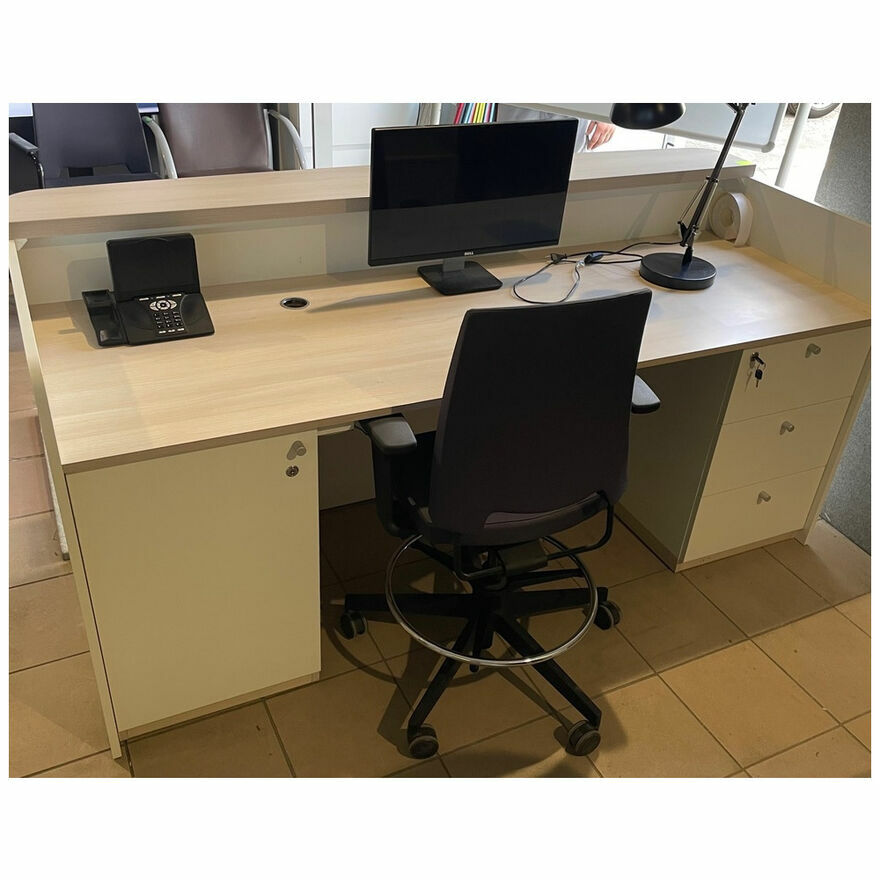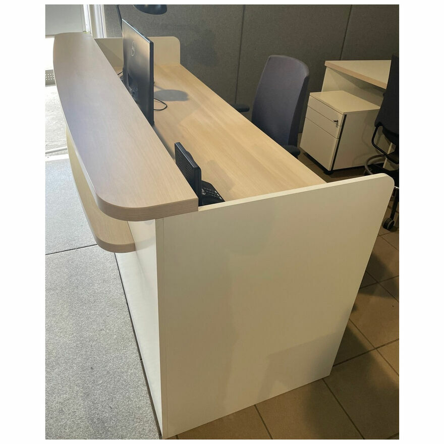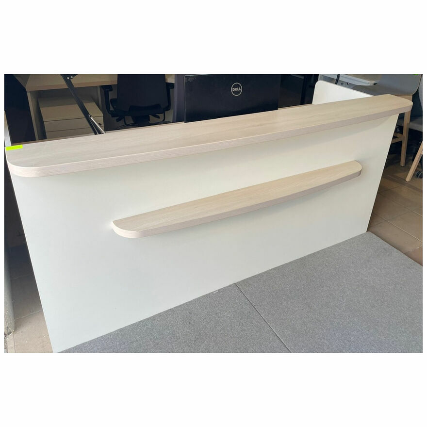 WYPRZEDAŻ MAGAZYNOWA !!!!PROMOCYJNA CENA!!!Posiadamy w sprzedaży przepiękną ladę recepcyjną w kolorze białym z dodatkami w kolorze jaśniutkiego drewna .