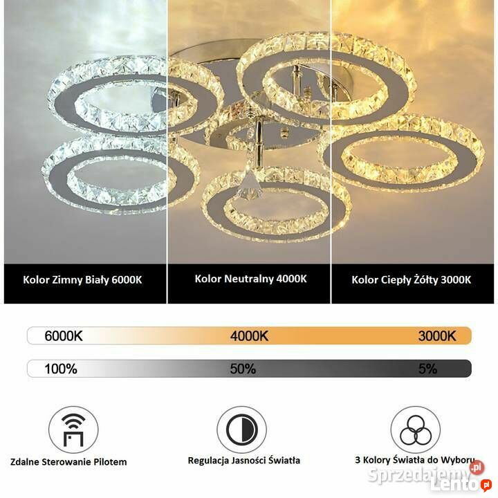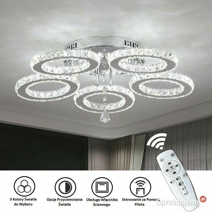 NOWOŚĆ KRYSZTAŁOWA LAMPA LED 5 KLOSZOWA Z PILOTEM ORAZ 3 KOLORAMI ŚWIATŁA W 1 LAMPIE Z FUNKCJĄ ŚCIEMNIANIAPROMOCJA NOWOROCZNA WYPRZEDAŻ LAMP TERAZ CENA TO TYLKO 399 ZŁOTYCH ZAMIAST 449 ZŁOTYCH