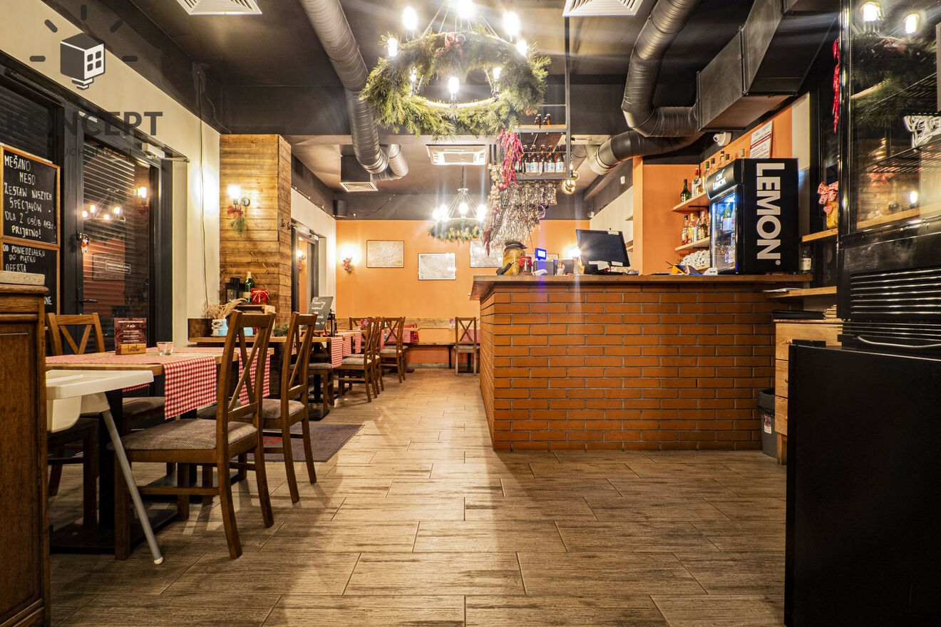 Do wynajęcia w pełni wyposażony lokal gastronomiczny o powierzchni 160 m², aktualnie działający jako restauracja.Sala ze stolikami ma pow. 80 m2, do dyspozycji jest w pełni wyposażona kuchnia, chłodnia, zmywak, zaplecze socjalne.