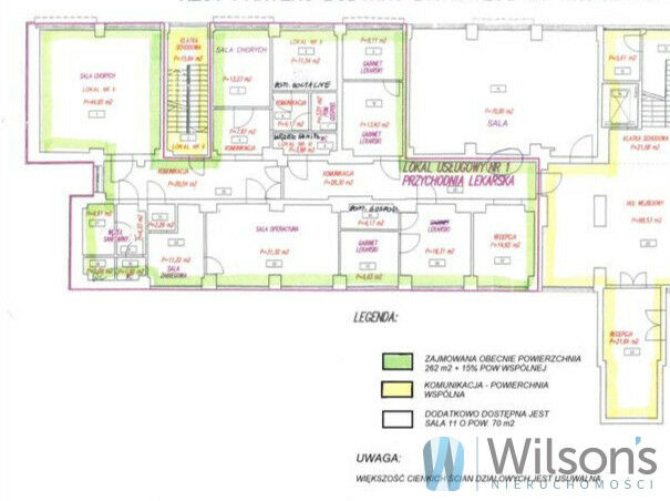 Do wynajęcia lokal pod placówkę medyczną - 302 m²Oferujemy do wynajęcia lokal o powierzchni 302 m² (powierzchnia użytkowa 262,5 m² + 15% części wspólnych), idealnie przystosowany do prowadzenia działalności medycznej.
