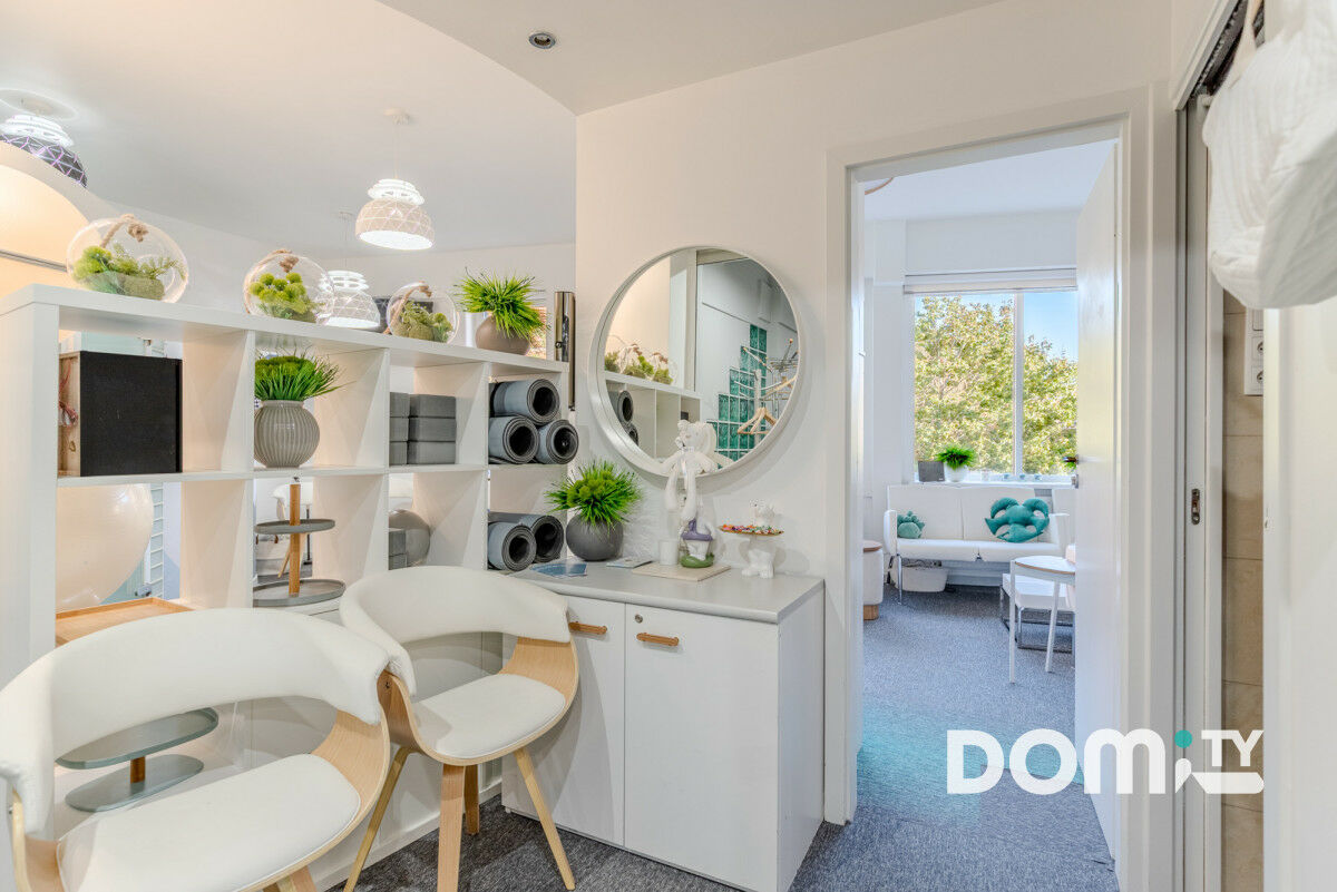 - przedsionek/poczekalnia znajdujący się już wewnątrz lokalu oraz dodatkowa przestrzeń z sofą w formie poczekalni dostępna na korytarzu współdzielonym z dwoma innymi gabinetami - sporo miejsc dla klientów oczekujących,