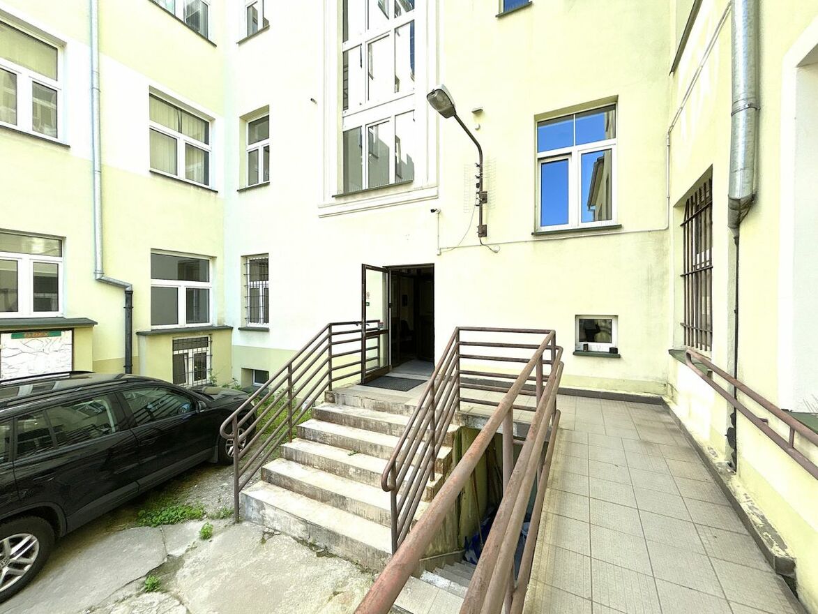 Do kamienicy są dwa wejścia od ulicy i od podwórka, z tys są miejsca postojowe.