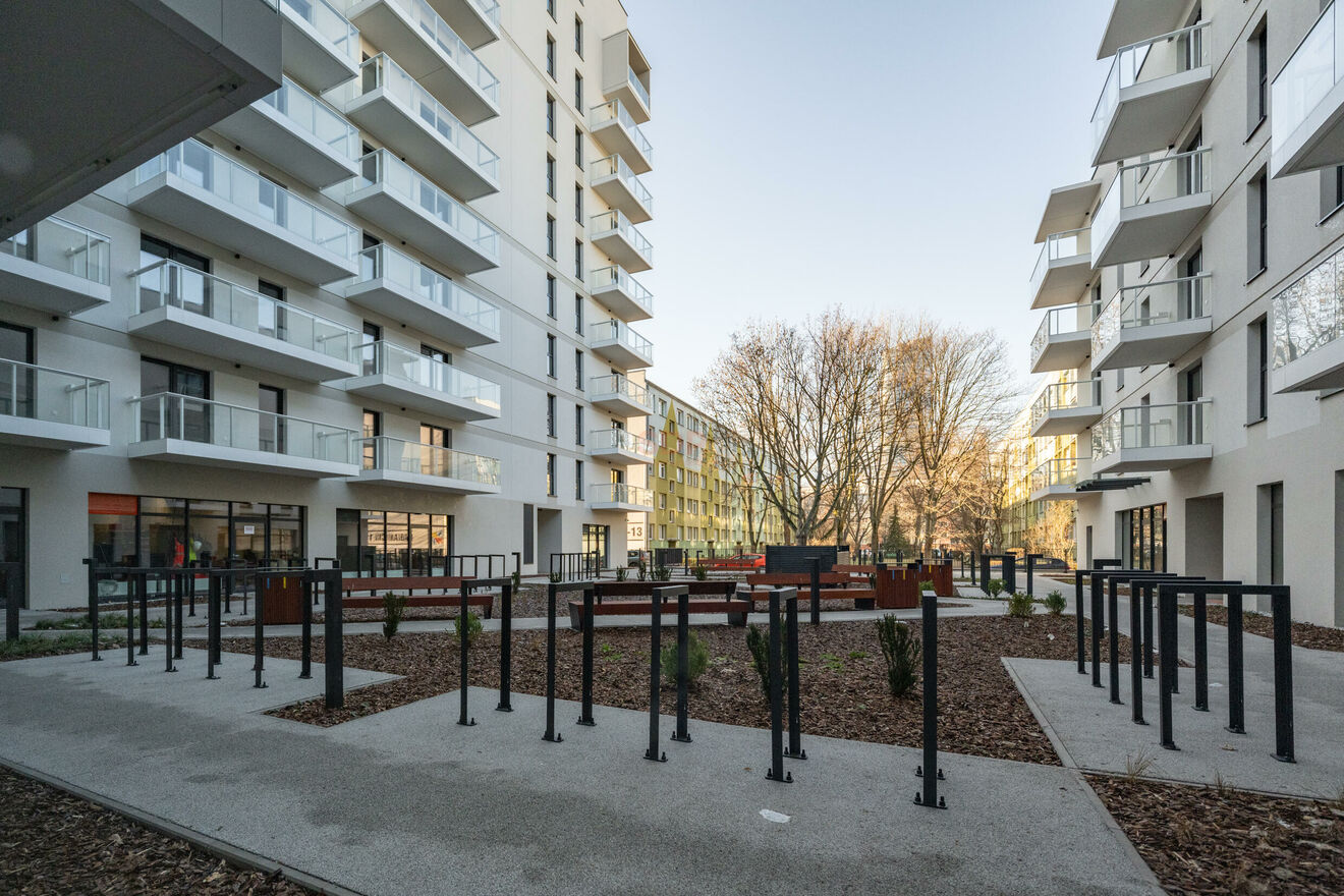 Lokal o projektowanej powierzchni 76,94m2 znajduje się na parterze 10-piętrowego budynku z windą.
