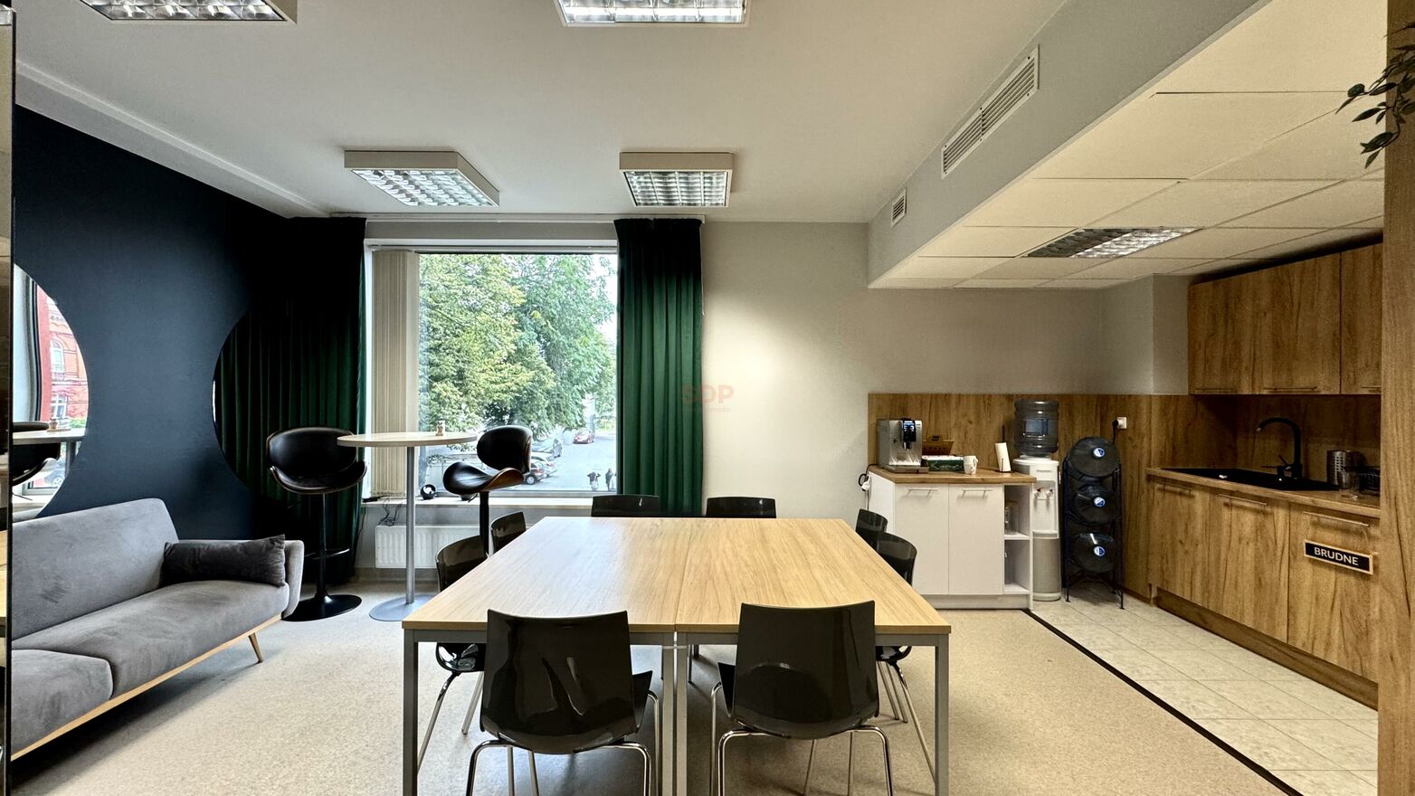 - wysokość pomieszczeń 2,7 m w części open space, 2,4 m w pokoju nr 1