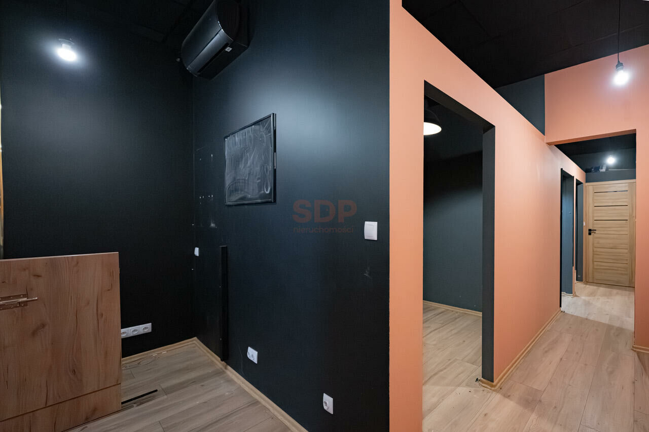 Lokal jest po generalnym remoncie, wymieniona została instalacja elektryczna, aktualna moc przyłączeniowa to 40 KW. Całość to ok. 53 m2, powierzchnia to część usługowa, 5 pokoi oraz WC. Lokal funkcjonował jako solarium. W łatwy sposób można zmienić aranżację (ścianki działowe z płyty GK)