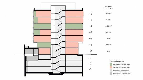 przeznaczone są na parking oraz 7 kondygnacji naziemnych. Budynek