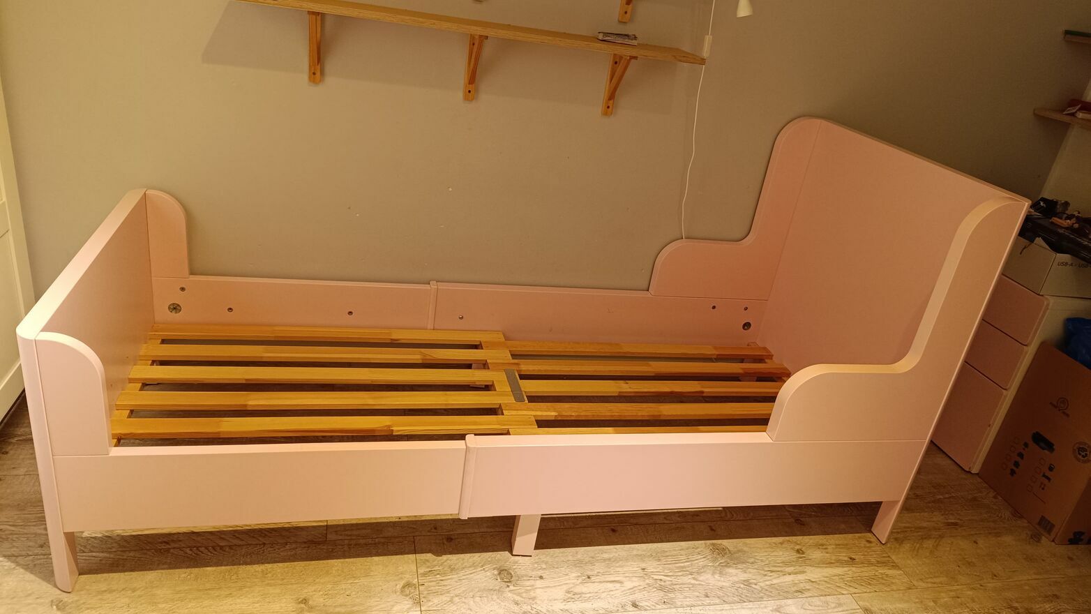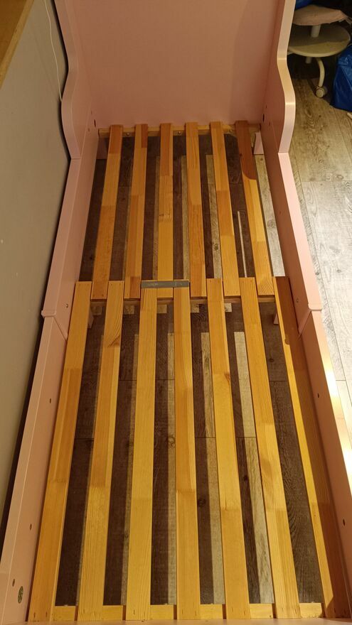 IKEA Busunge rozsuwane łóżko dziecięceNa sprzedaż rozsuwane łóżko z Ikea dla dziewczynki. Kolor to jasny róż. Łóżko jest w bardzo dobrym stanie technicznym, jest naprawdę bardzo solidne, nic się nie chwieje. Ma niewielkie ślady używania, drobne odpryski, te największe pokazane na zdjęciu, te mniejsze są niewidoczne na co dzień. Preferuję odbiór osobisty w stanie złożonym. Do łóżka posiadam oryginalny materac z Ikea, mogę dorzucić gratis, tylko proszę o informację, to wypiorę pokrycie materaca. Mam dwa takie łóżka, drugie w jeszcze lepszym stanie.