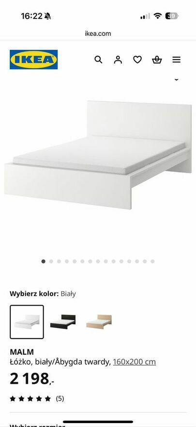 Łóżko Ikea Malm 160x200 Komplet: Rama Stelaż Materac